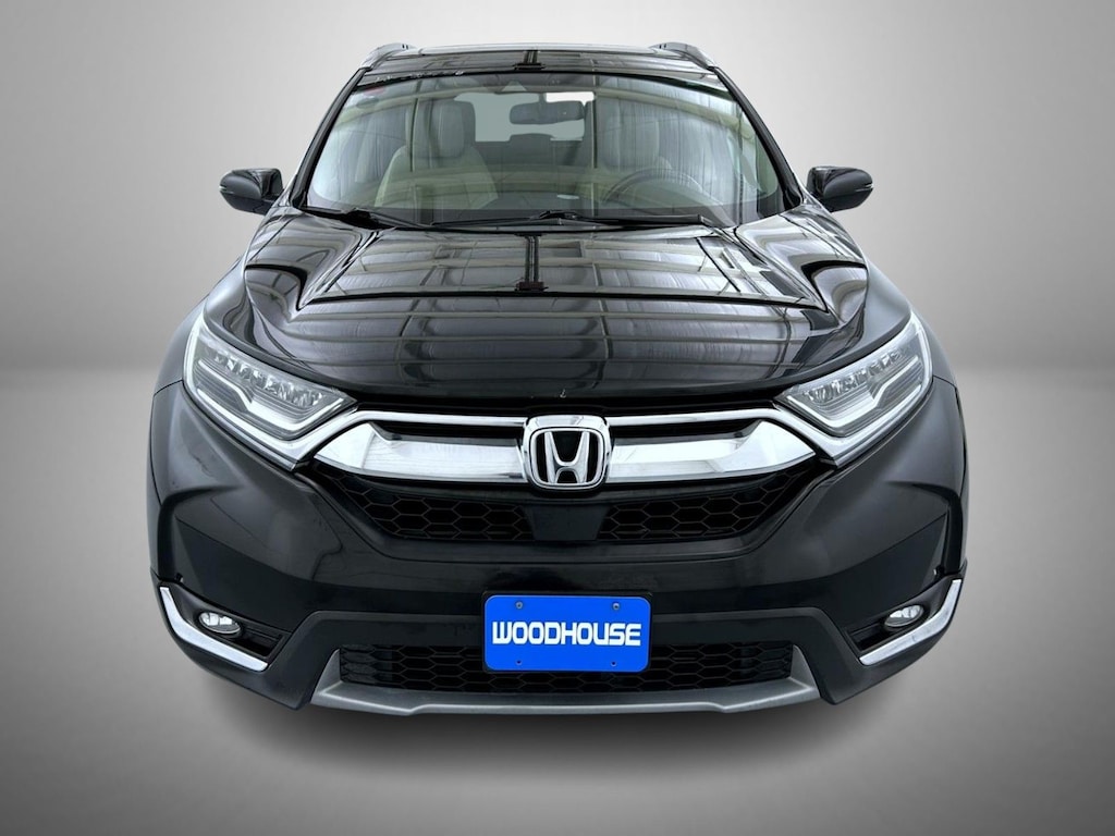 Black 2018 Honda CR-V Touring AWD CVT 1.5L I4 DOHC 16V 18" Alloy Wheels, 4-Wheel Disc Brakes, 5.64 Axle Ratio, 9 Speakers, ABS brakes, Air Conditioning, Alloy wheels, AM/FM radio: SiriusXM, Apple CarPlay/Android Auto, Auto High-beam Headlights, Auto-dimming Rear-View mirror, Automatic temperature control, Blind Spot Information (BSI) System warning, Brake assist, Bumpers: body-color, Compass, Delay-off headlights, Driver door bin, Driver vanity mirror, Dual front impact airbags, Dual front side impact airbags, Electronic Stability Control, Exterior Parking Camera Rear, Four wheel independent suspension, Front anti-roll bar, Front Bucket Seats, Front Center Armrest, Front dual zone A/C, Front fog lights, Front reading lights, Fully automatic headlights, Garage door transmitter: HomeLink, Heated door mirrors, Heated Front Bucket Seats, Heated front seats, Illuminated entry, Leather Seat Trim, Leather Shift Knob, Low tire pressure warning, Memory seat, Navigation System, Occupant sensing airbag, Outside temperature display, Overhead airbag, Overhead console, Panic alarm, Passenger door bin, Passenger vanity mirror, Power door mirrors, Power driver seat, Power Liftgate, Power moonroof, Power passenger seat, Power steering, Power windows, Radio data system, Radio: AM/FM/HD/SiriusXM Audio System, Rain sensing wipers, Rear anti-roll bar, Rear seat center armrest, Rear window defroster, Rear window wiper, Remote keyless entry, Roof rack: rails only, Security system, Speed control, Speed-sensing steering, Speed-Sensitive Wipers, Split folding rear seat, Spoiler, Steering wheel mounted audio controls, Tachometer, Telescoping steering wheel, Tilt steering wheel, Traction control, Trip computer, Turn signal indicator mirrors, Variably intermittent wipers.