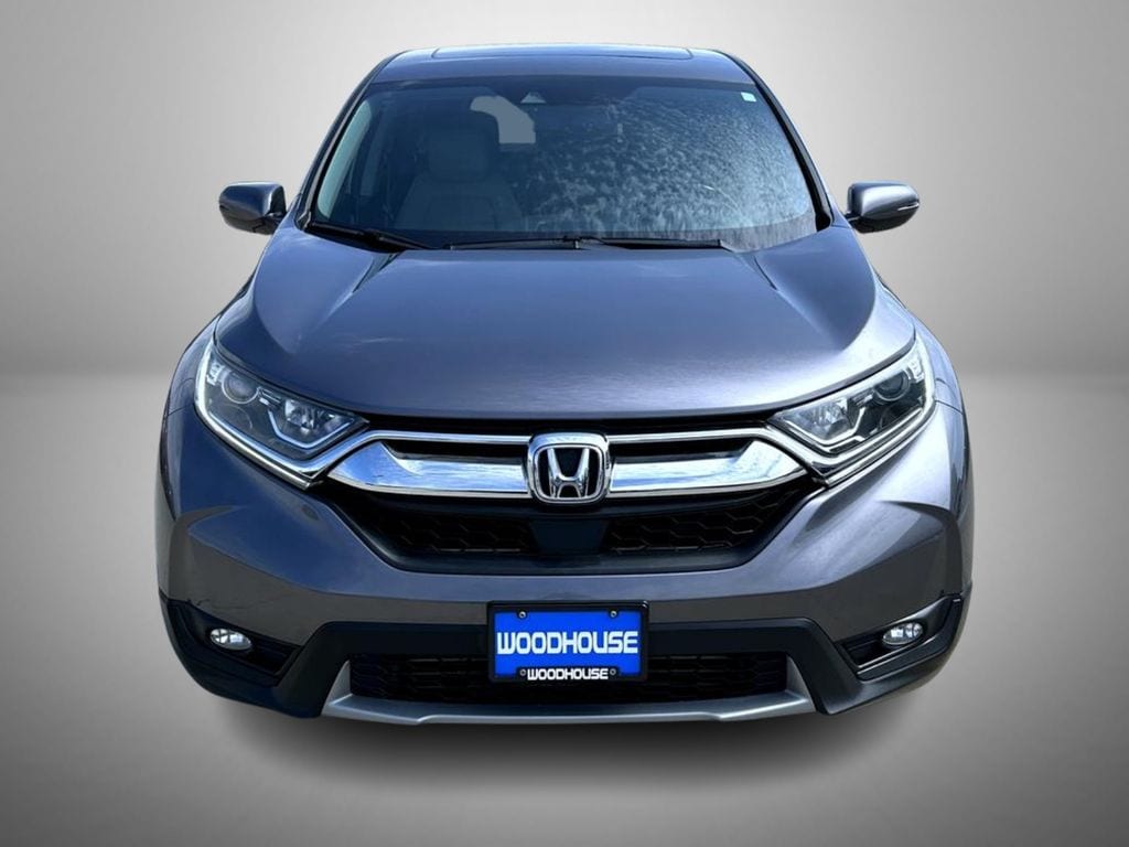 Gray 2019 Honda CR-V EX-L AWD CVT 1.5L I4 DOHC 16V 18" Alloy Wheels, 4-Wheel Disc Brakes, 5.64 Axle Ratio, 8 Speakers, ABS brakes, Air Conditioning, Alloy wheels, AM/FM radio: SiriusXM, Apple CarPlay/Android Auto, Auto High-beam Headlights, Auto-dimming Rear-View mirror, Automatic temperature control, Blind Spot Information (BSI) System warning, Brake assist, Bumpers: body-color, Compass, Delay-off headlights, Driver door bin, Driver vanity mirror, Dual front impact airbags, Dual front side impact airbags, Electronic Stability Control, Exterior Parking Camera Rear, Forward collision: Collision Mitigation Braking System (CMBS) + FCW mitigation, Four wheel independent suspension, Front anti-roll bar, Front Bucket Seats, Front Center Armrest, Front dual zone A/C, Front fog lights, Front reading lights, Fully automatic headlights, Garage door transmitter: HomeLink, Heated door mirrors, Heated Front Bucket Seats, Heated front seats, Illuminated entry, Lane departure: Lane Keeping Assist System (LKAS) active, Leather Seat Trim, Leather Shift Knob, Low tire pressure warning, Memory seat, Occupant sensing airbag, Outside temperature display, Overhead airbag, Overhead console, Panic alarm, Passenger door bin, Passenger vanity mirror, Power door mirrors, Power driver seat, Power Liftgate, Power moonroof, Power passenger seat, Power steering, Power windows, Radio data system, Radio: AM/FM/SiriusXM Audio System, Rear anti-roll bar, Rear seat center armrest, Rear window defroster, Rear window wiper, Remote keyless entry, Security system, Speed control, Speed-sensing steering, Speed-Sensitive Wipers, Split folding rear seat, Spoiler, Steering wheel mounted audio controls, Tachometer, Telescoping steering wheel, Tilt steering wheel, Traction control, Trip computer, Turn signal indicator mirrors, Variably intermittent wipers.