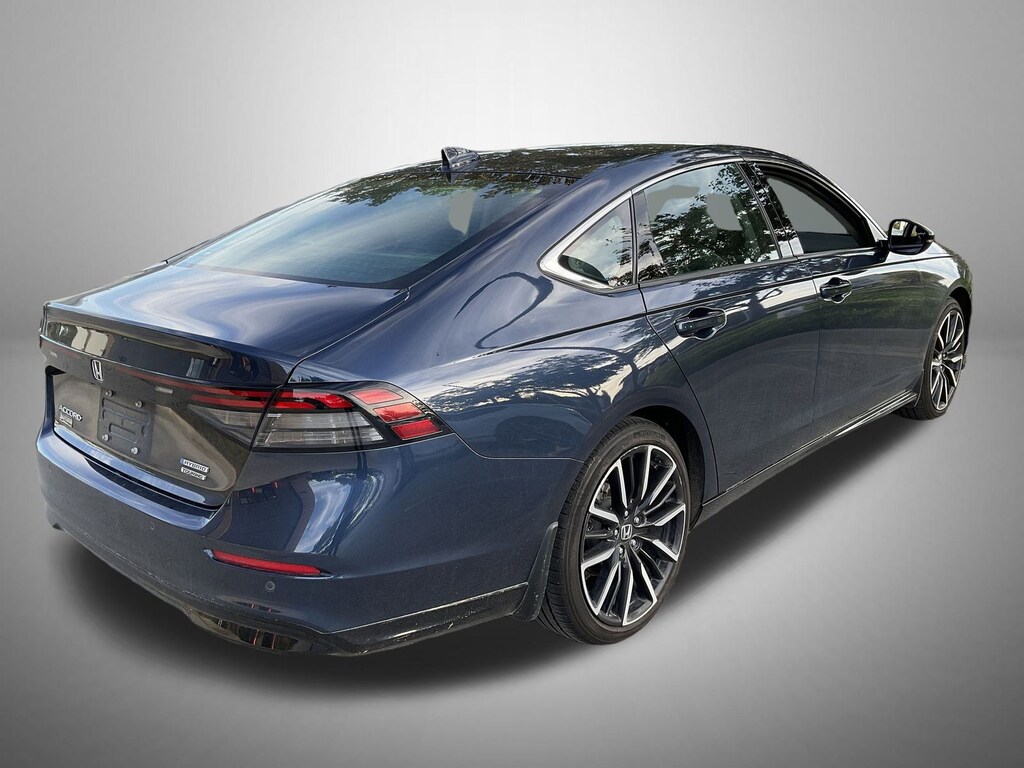 Blue 2024 Honda Accord Hybrid Touring FWD eCVT 2.0L 16V DOHC 2.0L 16V DOHC, 12 Speakers, 4-Wheel Disc Brakes, ABS brakes, Adaptive Cruise Control: Adaptive Cruise Control (ACC) with Low-Speed Follow, Adaptive suspension, Air Conditioning, Alloy wheels, AM/FM radio, Apple CarPlay/Android Auto, Auto High-beam Headlights, Auto-dimming Rear-View mirror, Automatic temperature control, Blind Spot Information (BSI) System warning, Bose Premium Sound System, Brake assist, Bumpers: body-color, Compass, Delay-off headlights, Driver door bin, Driver vanity mirror, Dual front impact airbags, Dual front side impact airbags, Electronic Stability Control, Emergency communication system: HondaLink, Exterior Parking Camera Rear, Four wheel independent suspension, Front anti-roll bar, Front Bucket Seats, Front Center Armrest, Front dual zone A/C, Front reading lights, Fully automatic headlights, Heads-Up Display, Heated & Ventilated Front Bucket Seats, Heated door mirrors, Heated front seats, Heated rear seats, Illuminated entry, Knee airbag, Lane departure: Lane Keeping Assist System (LKAS) active, Leather Shift Knob, Leather steering wheel, Leather-Trimmed Seat Trim, Low tire pressure warning, Memory seat, Navigation System, Occupant sensing airbag, Outside temperature display, Overhead airbag, Overhead console, Panic alarm, Passenger door bin, Passenger vanity mirror, Power door mirrors, Power driver seat, Power moonroof, Power passenger seat, Power steering, Power windows, Radio data system, Rain sensing wipers, Rear anti-roll bar, Rear reading lights, Rear seat center armrest, Rear side impact airbag, Rear window defroster, Remote keyless entry, Security system, Speed control, Speed-sensing steering, Speed-Sensitive Wipers, Split folding rear seat, Steering wheel mounted audio controls, Telescoping steering wheel, Tilt steering wheel, Traction control, Trip computer, Turn signal indicator mirrors, Variably intermittent wipers, Ventilated front seats, Wheels: 19" x 8.5J Berlina Black, 2.0L 16V DOHC.