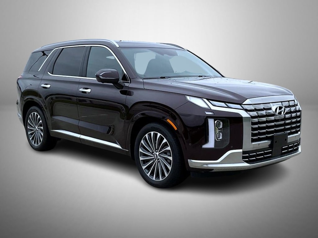 Sierra Burgundy 2025 Hyundai Palisade Calligraphy AWD 8-Speed Automatic with SHIFTRONIC V6 12 Speakers, 3rd row seats: split-bench, 4-Wheel Disc Brakes, ABS brakes, Air Conditioning, Alloy wheels, AM/FM radio: SiriusXM, Apple CarPlay & Android Auto, Auto High-beam Headlights, Auto-dimming door mirrors, Auto-dimming Rear-View mirror, Auto-leveling suspension, Automatic temperature control, Brake assist, Bumpers: body-color, Cargo Net, Cargo Tray, Carpeted Floor Mats, Compass, Delay-off headlights, Driver door bin, Driver vanity mirror, Dual front impact airbags, Dual front side impact airbags, Electronic Stability Control, Emergency communication system, Exterior Parking Camera Rear, First Aid Kit, Four wheel independent suspension, Front anti-roll bar, Front Bucket Seats, Front Center Armrest, Front dual zone A/C, Front reading lights, Fully automatic headlights, Garage door transmitter: HomeLink, harman/kardon® Speakers, Heads-Up Display, Heated & Ventilated Front Bucket Seats, Heated door mirrors, Heated front seats, Heated rear seats, Heated steering wheel, Illuminated entry, Knee airbag, Leather steering wheel, Low tire pressure warning, Memory seat, Mudguards, Navigation System, Occupant sensing airbag, Option Group 01, Outside temperature display, Overhead airbag, Overhead console, Panic alarm, Passenger door bin, Passenger vanity mirror, Power door mirrors, Power driver seat, Power Liftgate, Power moonroof, Power passenger seat, Power steering, Power windows, Premium Nappa Leather Seat Trim, Radio data system, Radio: AM/FM/MP3 Premium Audio System, Rain sensing wipers, Rear air conditioning, Rear anti-roll bar, Rear audio controls, Rear reading lights, Rear side impact airbag, Rear window defroster, Rear window wiper, Reclining 3rd row seat, Remote keyless entry, Roadside Assistance Kit, Security system, Speed control, Speed-sensing steering, Split folding rear seat, Spoiler, Steering wheel mounted audio controls, Tachometer, Telescoping steering wheel, Tilt steering wheel, Tow Hitch, Traction control, Trip computer, Turn signal indicator mirrors, Variably intermittent wipers, Ventilated front seats, Ventilated rear seats, Wheel Locks, Wheels: 20" x 7.5J Calligraphy Exclusive Alloy.