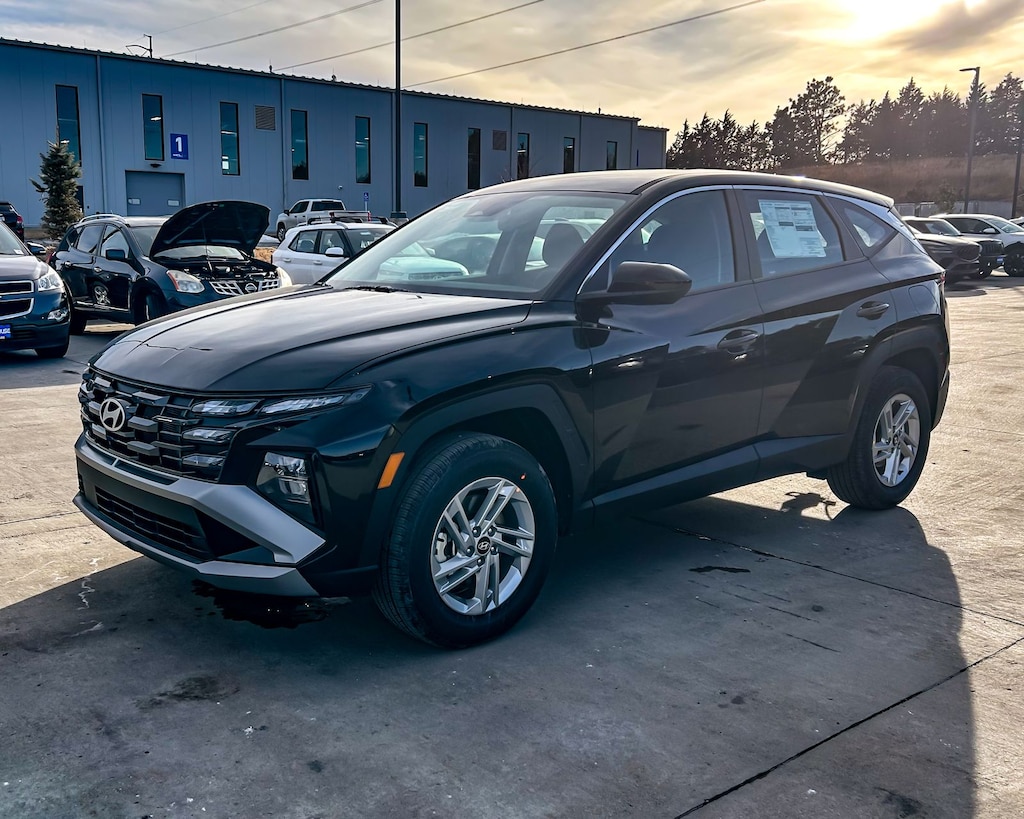Phantom Black 2025 Hyundai Tucson SE AWD 8-Speed Automatic with SHIFTRONIC 2.5L I4 DGI DOHC 16V LEV3-SULEV30 187hp AWD, 17" Alloy Wheels, 4-Wheel Disc Brakes, 6 Speakers, ABS brakes, Air Conditioning, Alloy wheels, AM/FM radio: SiriusXM, Apple CarPlay & Android Auto, Auto High-beam Headlights, Brake assist, Bumpers: body-color, Cargo Tray, Carpeted Floor Mats, Delay-off headlights, Driver door bin, Driver vanity mirror, Dual front impact airbags, Dual front side impact airbags, Electronic Stability Control, Emergency communication system: Bluelink+, First Aid Kit, Four wheel independent suspension, Front anti-roll bar, Front Bucket Seats, Front Center Armrest, Front reading lights, Fully automatic headlights, Illuminated entry, Low tire pressure warning, Occupant sensing airbag, Option Group 01, Outside temperature display, Overhead airbag, Overhead console, Panic alarm, Passenger door bin, Passenger vanity mirror, Power door mirrors, Power steering, Power windows, Radio data system, Radio: AM/FM/HD Audio System, Rear anti-roll bar, Rear reading lights, Rear seat center armrest, Rear side impact airbag, Rear window defroster, Rear window wiper, Remote keyless entry, Security system, Speed control, Split folding rear seat, Spoiler, Stain & Odor Resistant Cloth Seat Trim, Steering wheel mounted audio controls, Tachometer, Telescoping steering wheel, Tilt steering wheel, Tow Hitch, Traction control, Trip computer, Variably intermittent wipers, AWD.