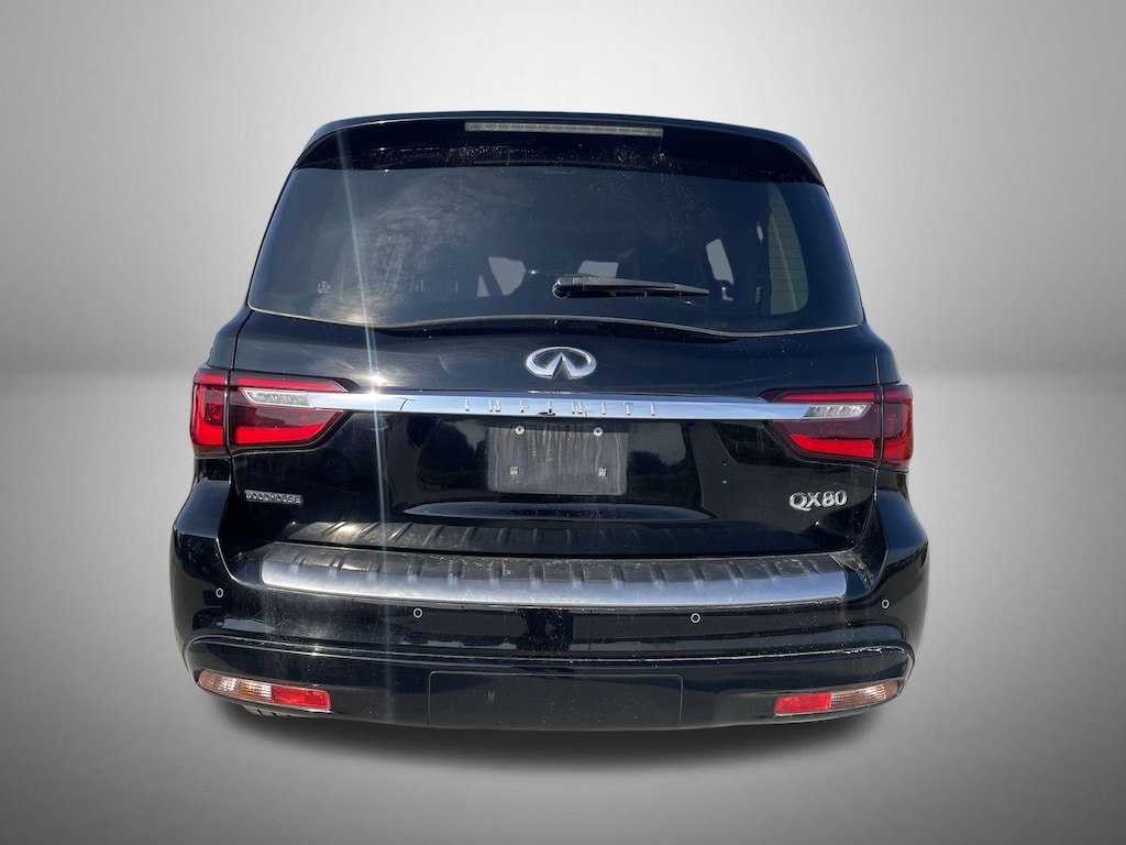 Black Obsidian 2018 INFINITI QX80 4WD 7-Speed Automatic 5.6L V8 120V Power Outlet, 13 Speakers, 2.94 Axle Ratio, 3rd row seats: split-bench, 4-Wheel Disc Brakes, ABS brakes, Air Conditioning, All Season Floor Mats, All Season Package, Alloy wheels, AM/FM radio: SiriusXM, Anti-whiplash front head restraints, Auto High-beam Headlights, Auto tilt-away steering wheel, Auto-dimming door mirrors, Auto-dimming Rear-View mirror, Auto-leveling suspension, Automatic temperature control, Backup Collision Intervention (BCI), Blind Spot Intervention (BSI), Blind Spot Warning, Brake assist, Bumpers: body-color, Cargo Protector, Carpeted Cargo Mat/Cargo Net & First Aid Kit, CD player, Delay-off headlights, Driver Assistance Package, Driver door bin, Driver vanity mirror, Dual 8" Color Monitors, Dual front impact airbags, Dual front side impact airbags, Electronic Stability Control, Emergency communication system: INFINITI Connection, Four wheel independent suspension, Front anti-roll bar, Front Bucket Seats, Front Center Armrest, Front dual zone A/C, Front fog lights, Front reading lights, Fully automatic headlights, Garage door transmitter: HomeLink, Genuine wood console insert, Genuine wood dashboard insert, Genuine wood door panel insert, Heated 2nd-Row Seats, Heated door mirrors, Heated Front Bucket Seats, Heated front seats, Heated steering wheel, Illuminated entry, INFINITI Radiant Illuminated Kick Plates, Intelligent Cruise Control (Full-Speed Range), Lane Departure Warning System, Leather Shift Knob, Leather steering wheel, Leather-Appointed Seats w/Stratford Burl Trim, Low tire pressure warning, Memory seat, Navigation System, Occupant sensing airbag, Outside temperature display, Overhead airbag, Overhead console, Panic alarm, Passenger door bin, Passenger vanity mirror, Power door mirrors, Power driver seat, Power Liftgate, Power moonroof, Power passenger seat, Power steering, Power windows, Radio data system, Radio: AM/FM/HD Single In-Dash CD/DVD Player w/MP3, Rain sensing wipers, Rear air conditioning, Rear anti-roll bar, Rear audio controls, Rear reading lights, Rear seat center armrest, Rear window defroster, Rear window wiper, Reclining 3rd row seat, Remote keyless entry, Roof rack: rails only, Roof Rail Crossbars, Security system, Speed control, Speed-sensing steering, Split folding rear seat, Spoiler, Steering wheel memory, Steering wheel mounted audio controls, Tachometer, Telescoping steering wheel, Theater Package, Tilt steering wheel, Tire & Wheel Package, Traction control, Trip computer, Turn signal indicator mirrors, Variably intermittent wipers, Voltmeter, Welcome Lighting, Wheels: 20" x 8.0" Split 6-Spoke Aluminum-Alloy, Wheels: 22" x 8.0" 14-Spoke Forged Aluminum-Alloy, Wireless Headphones (2).