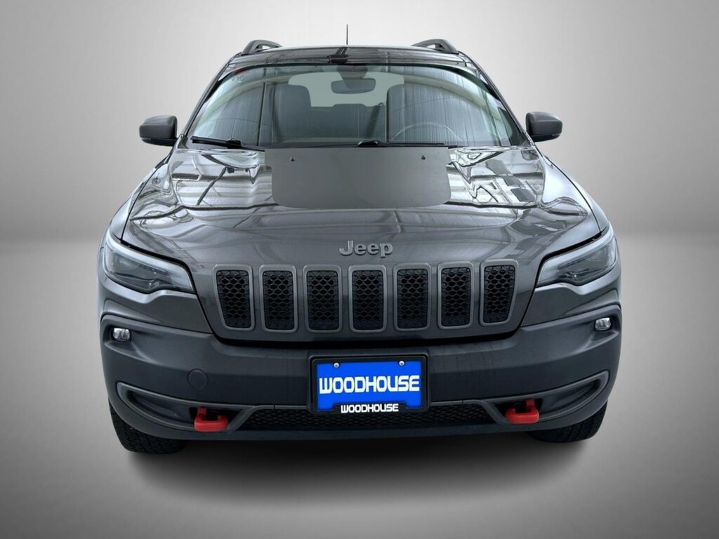 Granite Crystal Metallic Clearcoat 2020 Jeep Cherokee Trailhawk 4WD 9-Speed 948TE Automatic 3.2L V6 3.517 Axle Ratio, 4-Wheel Disc Brakes, 6 Speakers, 8.4" Touchscreen Display, ABS brakes, Air Conditioning, Alloy wheels, AM/FM radio: SiriusXM, Anti-whiplash front head restraints, Apple CarPlay, Apple CarPlay/Android Auto, Automatic temperature control, AutoStick Automatic Transmission, Auxiliary Transmission Oil Cooler, Brake assist, Cloth/Premium Vinyl Bucket Seats, Cold Weather Group, Compass, Delay-off headlights, Driver door bin, Driver vanity mirror, Dual Bright Exhaust Tips, Dual front impact airbags, Dual front side impact airbags, Electronic Stability Control, Engine Block Heater, Engine Oil Cooler, Exterior Mirrors Courtesy Lamps, Exterior Mirrors w/Supplemental Signals, Four wheel independent suspension, Front anti-roll bar, Front Bucket Seats, Front Center Armrest, Front dual zone A/C, Front fog lights, Front reading lights, Fully automatic headlights, Google Android Auto, GPS Antenna Input, Heated door mirrors, Heated Front Seats, Heated Steering Wheel, Hill Descent Control, Illuminated entry, Integrated Voice Command w/Bluetooth, Knee airbag, Leather Shift Knob, Leather Wrapped Steering Wheel, Low tire pressure warning, Occupant sensing airbag, Off Road Suspension, Outside temperature display, Overhead airbag, Overhead console, Panic alarm, ParkView Rear Back-Up Camera, Passenger door bin, Passenger vanity mirror, Power door mirrors, Power driver seat, Power steering, Power windows, Quick Order Package 27E Trailhawk, Radio data system, Radio: Uconnect 4 w/8.4" Display, Rear anti-roll bar, Rear reading lights, Rear seat center armrest, Rear side impact airbag, Rear window defroster, Rear window wiper, Remote keyless entry, Roof rack: rails only, SiriusXM Satellite Radio, Speed control, Speed-sensing steering, Split folding rear seat, Spoiler, Steering wheel mounted audio controls, Stop-Start Multiple VSM System, Tachometer, Telescoping steering wheel, Tilt steering wheel, Traction control, Trip computer, Turn signal indicator mirrors, USB Host Flip, Variably intermittent wipers, Voltmeter, Wheels: 17" x 7.5" Painted Diamond Cut Aluminum, Windshield Wiper De-Icer.