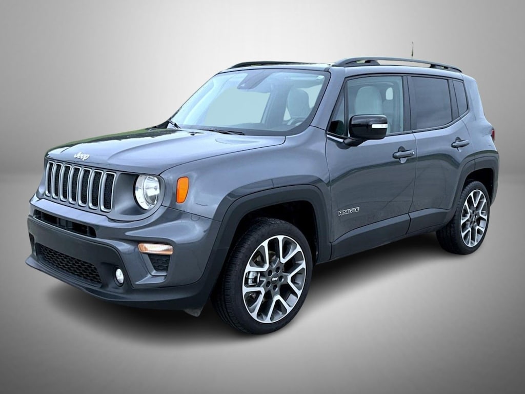 Graphite Gray 2022 Jeep Renegade Limited 4WD 9-Speed 948TE Automatic 1.3L I4 3.734 Final Drive Ratio, 4-Wheel Disc Brakes, 6 Speakers, ABS brakes, Air Conditioning, Alloy wheels, AM/FM radio: SiriusXM, Anti-whiplash front head restraints, Apple CarPlay/Android Auto, Auto-dimming Rear-View mirror, Automatic temperature control, Body Color Roof, Brake assist, Compass, Delay-off headlights, Driver door bin, Driver vanity mirror, Dual front impact airbags, Dual front side impact airbags, Dual-Pane Panoramic Power Sunroof, Electronic Stability Control, Emergency communication system: SiriusXM Guardian, Four wheel independent suspension, Front anti-roll bar, Front Bucket Seats, Front Center Armrest, Front dual zone A/C, Front fog lights, Front reading lights, Fully automatic headlights, Heated door mirrors, Heated front seats, Heated steering wheel, Illuminated entry, Knee airbag, Leather Shift Knob, Leather steering wheel, Leather Trimmed Bucket Seats, Low tire pressure warning, Navigation System, Normal Duty Suspension, Occupant sensing airbag, Outside temperature display, Overhead airbag, Panic alarm, ParkView Rear Back-Up Camera, Passenger door bin, Passenger vanity mirror, Power door mirrors, Power driver seat, Power steering, Power windows, Premium Audio, Quick Order Package 22D, Radio data system, Radio: Uconnect 4C Nav w/8.4" Display, Rain sensing wipers, Rear anti-roll bar, Rear seat center armrest, Rear window defroster, Rear window wiper, Remote keyless entry, Roof rack: rails only, Security system, Speed control, Split folding rear seat, Spoiler, Steering wheel mounted audio controls, Sun, Sound & Wheels Group, Tachometer, Telescoping steering wheel, Tilt steering wheel, Traction control, Trip computer, Turn signal indicator mirrors, Variably intermittent wipers, Voltmeter, Wheels: 18" x 7.0" Painted Aluminum, Wheels: 19" x 7.5" Diamond Cut Aluminum.