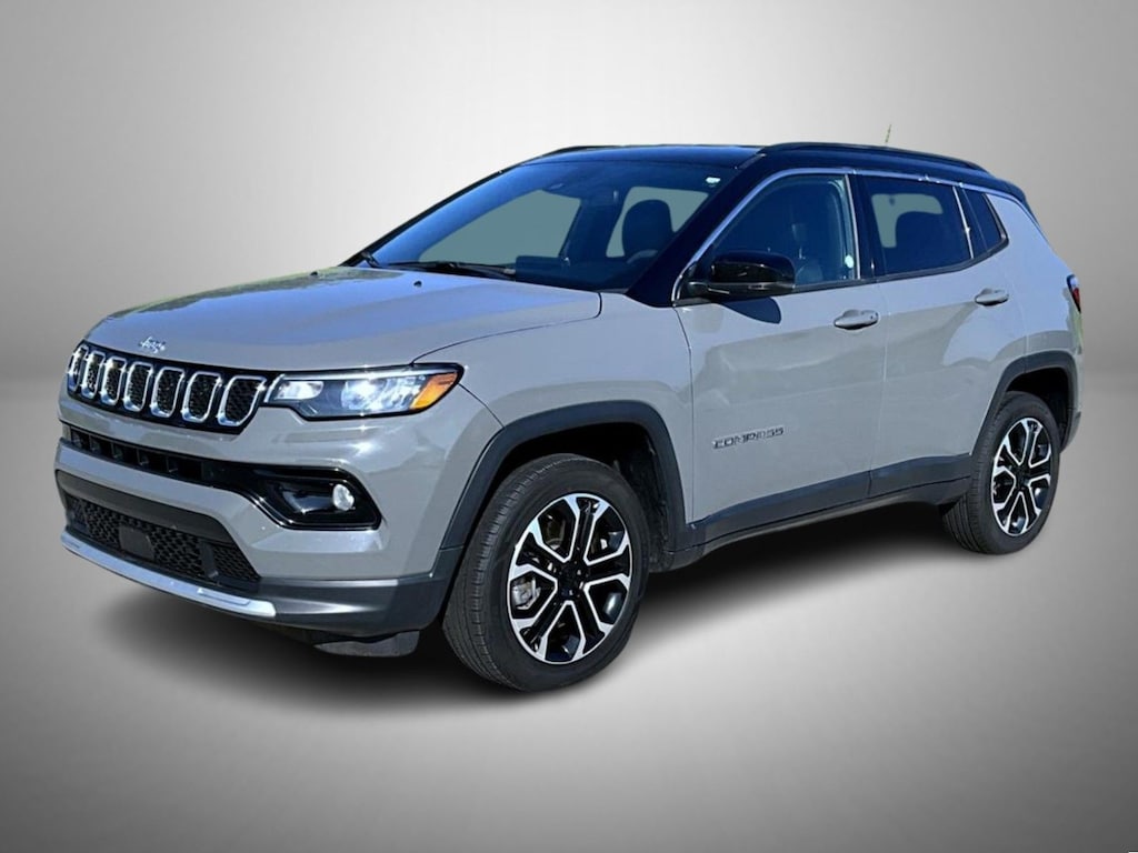 Sting-Gray Clearcoat 2023 Jeep Compass Limited 4WD 8-Speed Automatic 2.0L I4 DOHC 4WD, 10.1" Touchscreen Display, 3.73 Final Drive Ratio, 4-Wheel Disc Brakes, 6 Speakers, ABS brakes, Air Conditioning, Alloy wheels, AM/FM radio: SiriusXM, Auto High-beam Headlights, Auto-dimming Rear-View mirror, Automatic temperature control, Brake assist, Bumpers: body-color, Compass, Delay-off headlights, Disassociated Touchscreen Display, Driver door bin, Driver vanity mirror, Dual front impact airbags, Dual front side impact airbags, Electronic Stability Control, Four wheel independent suspension, Front anti-roll bar, Front Bucket Seats, Front Center Armrest w/Storage, Front dual zone A/C, Front fog lights, Front License Plate Bracket, Front reading lights, Fully automatic headlights, Heated door mirrors, Heated front seats, Heated steering wheel, Hidden Exhaust Tips-Dual, Illuminated entry, Knee airbag, Leather Shift Knob, Leatherette Seats, Low tire pressure warning, Occupant sensing airbag, Outside temperature display, Overhead airbag, Overhead console, Panic alarm, ParkView Rear Back-Up Camera, Passenger door bin, Passenger vanity mirror, Power door mirrors, Power driver seat, Power steering, Power windows, Quick Order Package 29G, Radio: Uconnect 5 w/10.1" Display, Rain sensing wipers, Rear anti-roll bar, Rear seat center armrest, Rear window defroster, Rear window wiper, Remote keyless entry, Security system, SiriusXM Radio Service, Speed control, Split folding rear seat, Spoiler, Steering wheel mounted audio controls, Tachometer, Telescoping steering wheel, Tilt steering wheel, Traction control, Trip computer, Turn signal indicator mirrors, Variably intermittent wipers, Wheels: 18" x 7" Painted Diamond Cut Aluminum, 4WD.