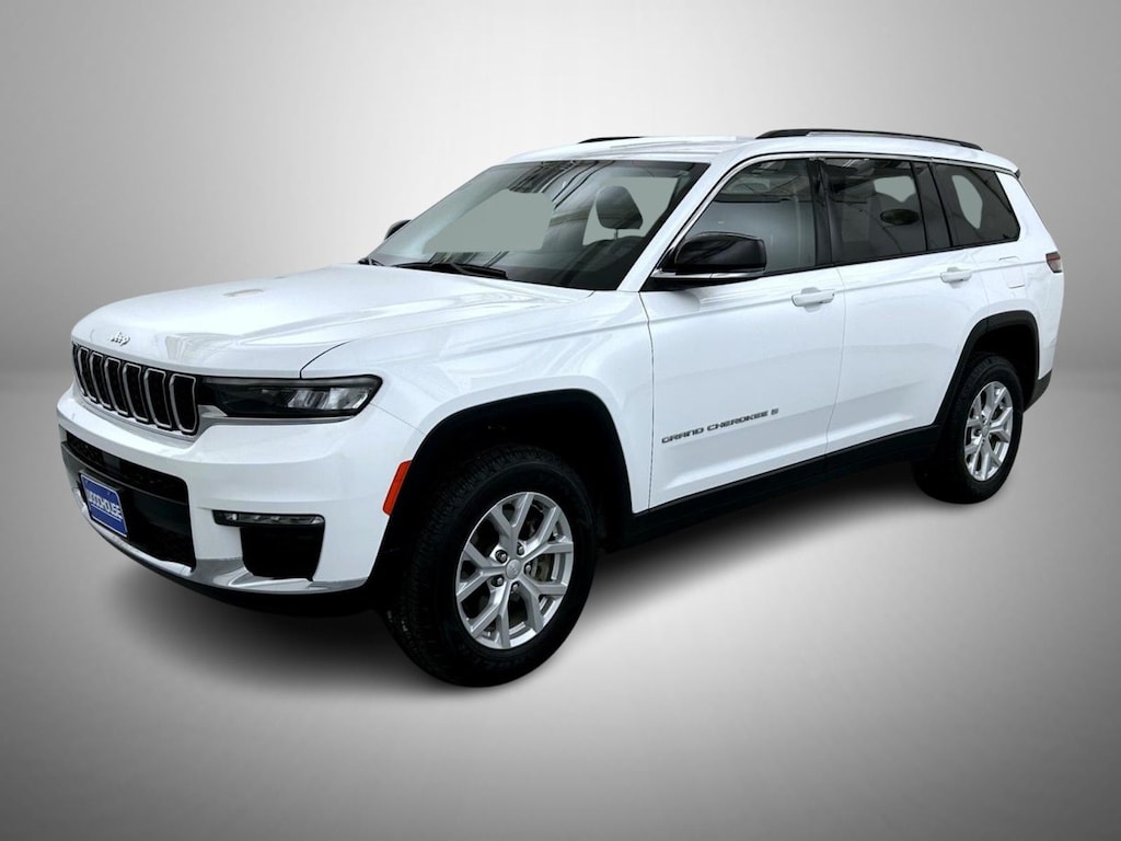 Bright White Clearcoat 2023 Jeep Grand Cherokee L Limited 4WD 8-Speed Automatic 3.6L V6 24V VVT 3.45 Rear Axle Ratio, 3rd row seats: split-bench, 4-Wheel Disc Brakes, 6 Speakers, ABS brakes, Active Noise Control System, Air Conditioning, Alloy wheels, AM/FM radio: SiriusXM with 360L, Anti-whiplash front head restraints, Audio memory, Auto High-beam Headlights, Automatic temperature control, Brake assist, Bumpers: body-color, Capri Leatherette Seats, Compass, Delay-off headlights, Driver door bin, Driver vanity mirror, Dual front impact airbags, Dual front side impact airbags, Electronic Stability Control, Emergency communication system, Four wheel independent suspension, Front anti-roll bar, Front Bucket Seats, Front Center Armrest w/Storage, Front dual zone A/C, Front fog lights, Front License Plate Bracket, Front reading lights, Fully automatic headlights, Garage door transmitter, Heated door mirrors, Heated front seats, Heated rear seats, Heated steering wheel, Illuminated entry, Knee airbag, Low tire pressure warning, Manual Fold Seatbacks, Memory seat, Molded In Color Black/Gloss Black Roof Rails, Navigation System, Normal Duty Suspension, Occupant sensing airbag, Outside temperature display, Overhead airbag, Overhead console, Panic alarm, ParkView Rear Back-Up Camera, Passenger door bin, Passenger vanity mirror, Power door mirrors, Power driver seat, Power Liftgate, Power passenger seat, Power steering, Power windows, Quick Order Package 23E, Radio data system, Radio: Uconnect 5 Nav w/10.1" Display, Rear air conditioning, Rear anti-roll bar, Rear reading lights, Rear window defroster, Rear window wiper, Reclining 3rd row seat, Remote keyless entry, Security system, Speed control, Speed-Sensitive Wipers, Split folding rear seat, Spoiler, Steering wheel mounted audio controls, Tachometer, Telescoping steering wheel, Tilt steering wheel, Traction control, Trip computer, Turn signal indicator mirrors, Variably intermittent wipers, Voltmeter, Wheels: 18" x 8.0" Fully Painted Aluminum.