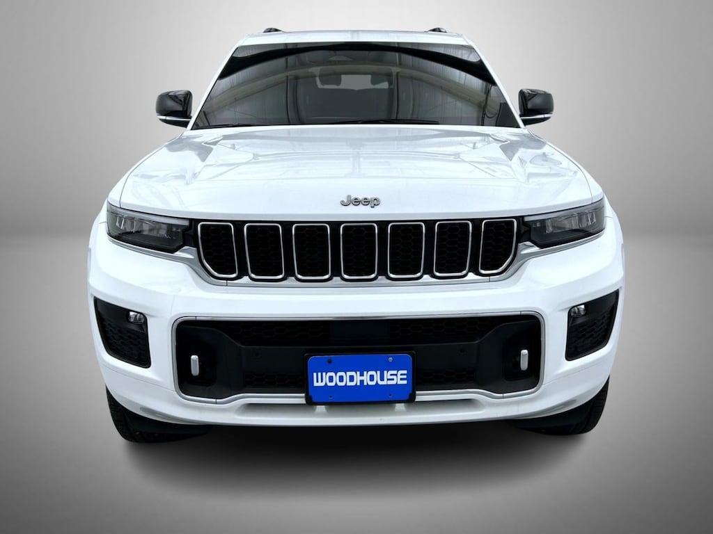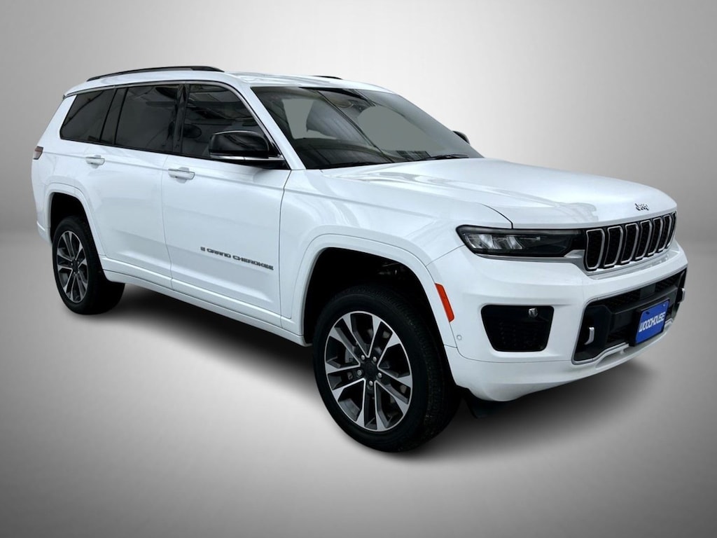 Bright White Clearcoat 2023 Jeep Grand Cherokee L Overland 4WD 8-Speed Automatic 3.6L V6 24V VVT 10 Speakers, 19 Speakers High Performance Audio, 3.45 Rear Axle Ratio, 3rd row seats: split-bench, 4-Wheel Disc Brakes, 950 Watt Amplifier, ABS brakes, Active Noise Control System, Adaptive suspension, Air Conditioning, Alloy wheels, AM/FM radio: SiriusXM with 360L, Anti-whiplash front head restraints, Audio memory, Auto High-beam Headlights, Auto-dimming door mirrors, Auto-dimming Rear-View mirror, Auto-leveling suspension, Automatic temperature control, Brake assist, Bumpers: body-color, Compass, Delay-off headlights, Driver door bin, Driver vanity mirror, Dual front impact airbags, Dual front side impact airbags, Electronic Stability Control, Emergency communication system, Four wheel independent suspension, Front anti-roll bar, Front Bucket Seats, Front Center Armrest w/Storage, Front dual zone A/C, Front fog lights, Front License Plate Bracket, Front reading lights, Fully automatic headlights, Garage door transmitter, Heated door mirrors, Heated front seats, Heated rear seats, Heated steering wheel, Illuminated entry, Knee airbag, Low tire pressure warning, Memory seat, Nappa Leather Seats, Navigation System, Normal Duty Suspension, Occupant sensing airbag, Outside temperature display, Overhead airbag, Overhead console, Panic alarm, Passenger door bin, Passenger vanity mirror, Power door mirrors, Power driver seat, Power Fold Seatbacks, Power Liftgate, Power moonroof, Power passenger seat, Power steering, Power windows, Quick Order Package 22N, Radio data system, Radio: Uconnect 5 Nav w/10.1" Display, Rain sensing wipers, Rear air conditioning, Rear anti-roll bar, Rear reading lights, Rear window defroster, Rear window wiper, Reclining 3rd row seat, Remote keyless entry, Security system, Speed control, Speed-Sensitive Wipers, Split folding rear seat, Spoiler, Steering wheel memory, Steering wheel mounted audio controls, Tachometer, Telescoping steering wheel, Tilt steering wheel, Traction control, Trip computer, Turn signal indicator mirrors, Variably intermittent wipers, Ventilated front seats, Voltmeter, Wheels: 20" x 8.5" Machined Face Aluminum.
