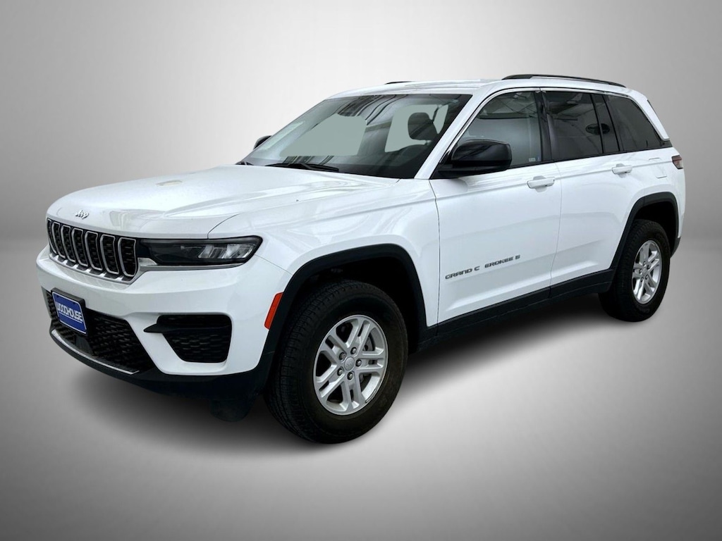 19/26 City/Highway MPG Bright White Clearcoat 2023 Jeep Grand Cherokee Laredo 4WD 8-Speed Automatic 3.6L V6 24V VVT 4WD, 3.45 Rear Axle Ratio, 4-Wheel Disc Brakes, 6 Speakers, ABS brakes, Air Conditioning, Alloy wheels, Anti-whiplash front head restraints, Automatic temperature control, Brake assist, Bumpers: body-color, Cloth Seats, Compass, Delay-off headlights, Driver door bin, Driver vanity mirror, Dual front impact airbags, Dual front side impact airbags, Electronic Stability Control, Emergency communication system, Four wheel independent suspension, Front anti-roll bar, Front Bucket Seats, Front Center Armrest w/Storage, Front dual zone A/C, Front License Plate Bracket, Front reading lights, Fully automatic headlights, Heated door mirrors, Heated Front Seats, Illuminated entry, Knee airbag, Low tire pressure warning, Luxury Tech Group I, Molded In Color Black/Gloss Black Roof Rails, Normal Duty Suspension, Occupant sensing airbag, Outside temperature display, Overhead airbag, Overhead console, Panic alarm, ParkView Rear Back-Up Camera, Passenger door bin, Passenger vanity mirror, Power door mirrors, Power driver seat, Power Liftgate, Power steering, Power windows, Quick Order Package 22A Laredo, Radio data system, Radio: Uconnect 5 w/8.4" Display, Rear anti-roll bar, Rear reading lights, Rear window defroster, Rear window wiper, Remote keyless entry, Security system, Speed control, Speed-Sensitive Wipers, Split folding rear seat, Spoiler, Steering wheel mounted audio controls, Tachometer, Telescoping steering wheel, Tilt steering wheel, Traction control, Trip computer, Variably intermittent wipers, Voltmeter, Wheels: 17" x 6.5" Fully Painted Aluminum, 4WD.