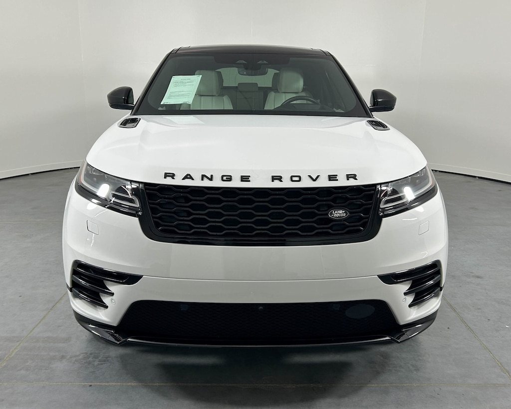 White 2021 Land Rover Range Rover Velar P250 R-Dynamic S 4WD 8-Speed Automatic 2.0L I4 Turbocharged DOHC 16V LEV3-SULEV30 247hp 11 Speakers, 14-Way Front Seats w/Driver Memory, 3.23 Axle Ratio, 4-Wheel Disc Brakes, ABS brakes, Air Conditioning, Alloy wheels, AM/FM radio: SiriusXM, Apple CarPlay & Android Auto, Auto High-beam Headlights, Auto tilt-away steering wheel, Auto-dimming door mirrors, Auto-dimming Rear-View mirror, Automatic temperature control, Brake assist, Bumpers: body-color, Compass, Delay-off headlights, Driver door bin, Driver vanity mirror, Dual front impact airbags, Dual front side impact airbags, Electronic Stability Control, Emergency communication system, Exterior Parking Camera Rear, Four wheel independent suspension, Front anti-roll bar, Front Bucket Seats, Front Center Armrest, Front dual zone A/C, Front reading lights, Fully automatic headlights, Garage door transmitter, Headlight cleaning, Heated door mirrors, Illuminated entry, Low tire pressure warning, Memory seat, Navigation system: Connected Navigation PIVI Pro, Occupant sensing airbag, Outside temperature display, Overhead airbag, Overhead console, Panic alarm, Passenger door bin, Passenger vanity mirror, Perforated Grained Leather & Suedecloth Seat Trim, Power door mirrors, Power driver seat, Power Liftgate, Power moonroof, Power passenger seat, Power steering, Power windows, Radio data system, Radio: Meridian Sound System (380W), Rain sensing wipers, Rear anti-roll bar, Rear fog lights, Rear reading lights, Rear seat center armrest, Rear window defroster, Rear window wiper, Remote keyless entry, Security system, Speed control, Speed-sensing steering, Speed-Sensitive Wipers, Split folding rear seat, Spoiler, Steering wheel memory, Steering wheel mounted audio controls, Tachometer, Telescoping steering wheel, Tilt steering wheel, Traction control, Trip computer, Turn signal indicator mirrors, Variably intermittent wipers, Wheels: 19" 5 Spoke Satin Dark Grey.