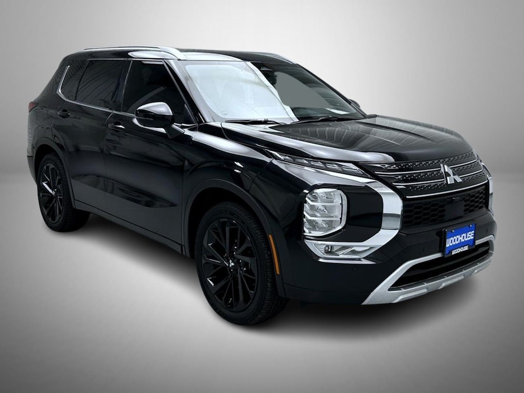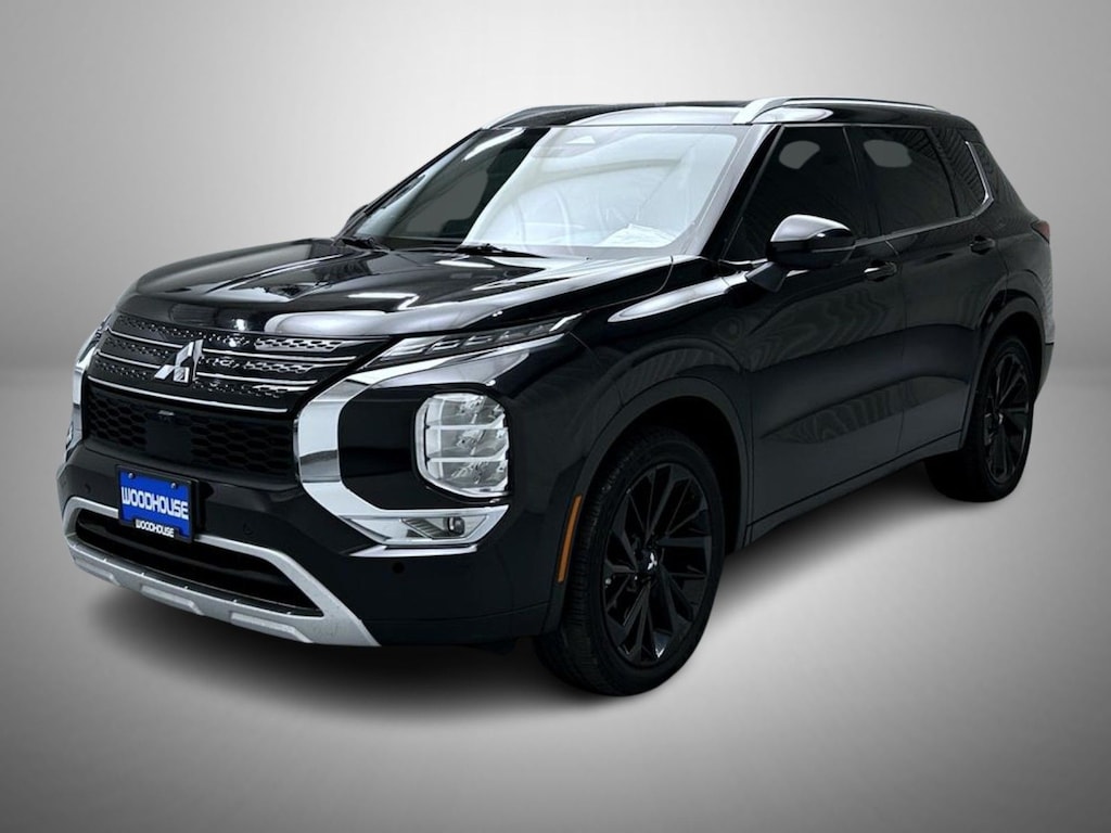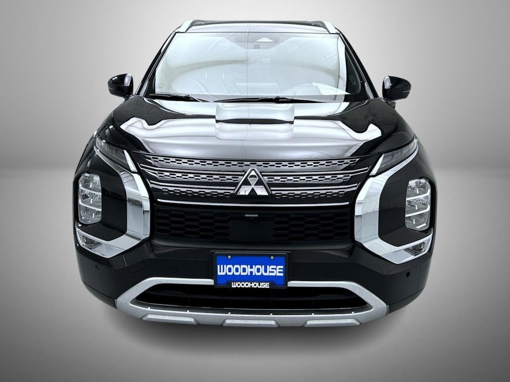 Black 2022 Mitsubishi Outlander SEL FWD CVT 2.5L 4-Cylinder DOHC 3rd row seats: split-bench, 4-Wheel Disc Brakes, 6 Speakers, ABS brakes, Air Conditioning, Alloy wheels, AM/FM radio: SiriusXM, Android Auto & Apple CarPlay, Auto High-beam Headlights, Auto-dimming Rear-View mirror, Automatic temperature control, Axle Ratio: 5.694, Brake assist, Bumpers: body-color, Driver door bin, Driver vanity mirror, Dual front impact airbags, Dual front side impact airbags, Electronic Stability Control, Emergency communication system: Mitsubishi Connect w/ 24-month trial, Four wheel independent suspension, Front anti-roll bar, Front Bucket Seats, Front Center Armrest w/Storage, Front dual zone A/C, Front fog lights, Front reading lights, Fully automatic headlights, Heated door mirrors, Heated Front Bucket Seats, Heated front seats, Illuminated entry, Knee airbag, Leather Seat Trim, Leather Shift Knob, Leather steering wheel, Low tire pressure warning, Memory seat, Navigation system: Powered by TOMTOM, Occupant sensing airbag, Outside temperature display, Overhead airbag, Overhead console, Panic alarm, Passenger door bin, Passenger vanity mirror, Power door mirrors, Power driver seat, Power Liftgate, Power passenger seat, Power steering, Power windows, Radio data system, Radio: AM/FM 9.0" Navigation w/Smartphone Link, Rain sensing wipers, Rear air conditioning, Rear anti-roll bar, Rear seat center armrest, Rear side impact airbag, Rear window defroster, Rear window wiper, Reclining 3rd row seat, Remote keyless entry, Roof rack: rails only, Security system, Speed control, Speed-Sensitive Wipers, Split folding rear seat, Spoiler, Steering wheel mounted audio controls, Tachometer, Telescoping steering wheel, Tilt steering wheel, Traction control, Trip computer, Turn signal indicator mirrors, Variably intermittent wipers, Wheels: 20" x 8J Two-Tone Alloy.