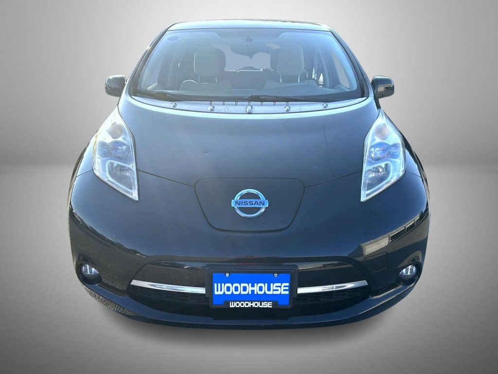 Super Black Metallic 2012 Nissan Leaf SL FWD Single Speed Reducer 80kW AC Synchronous Electric Motor 16" Aluminum Alloy Wheels, 4-Wheel Disc Brakes, 6 Speakers, ABS brakes, Air Conditioning, Alloy wheels, AM/FM radio: SiriusXM, Anti-whiplash front head restraints, Auto-dimming Rear-View mirror, Automatic temperature control, Brake assist, Bumpers: body-color, CD player, Driver door bin, Driver vanity mirror, Dual front impact airbags, Dual front side impact airbags, Electronic Stability Control, Exterior Parking Camera Rear, Floor Mats & Cargo Area Mat, Front anti-roll bar, Front Bucket Seats, Front Center Armrest, Front fog lights, Front reading lights, Front wheel independent suspension, Fully automatic headlights, Garage door transmitter: HomeLink, Heated Front Bucket Seats, Heated front seats, Heated rear seats, Heated steering wheel, Illuminated entry, Low tire pressure warning, Navigation System, Occupant sensing airbag, Outside temperature display, Overhead airbag, Overhead console, Panic alarm, Partially Recycled Cloth Seat Fabric, Passenger door bin, Passenger vanity mirror, Power door mirrors, Power steering, Power windows, Radio: AM/FM/Single In-Dash CD/MP3/WMA, Rear anti-roll bar, Rear window defroster, Rear window wiper, Remote keyless entry, Security system, Speed control, Speed-sensing steering, Splash Guards, Split folding rear seat, Spoiler, Steering wheel mounted audio controls, Tilt steering wheel, Traction control, Trip computer, Variably intermittent wipers.