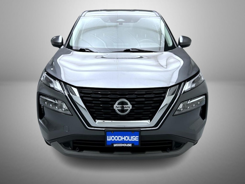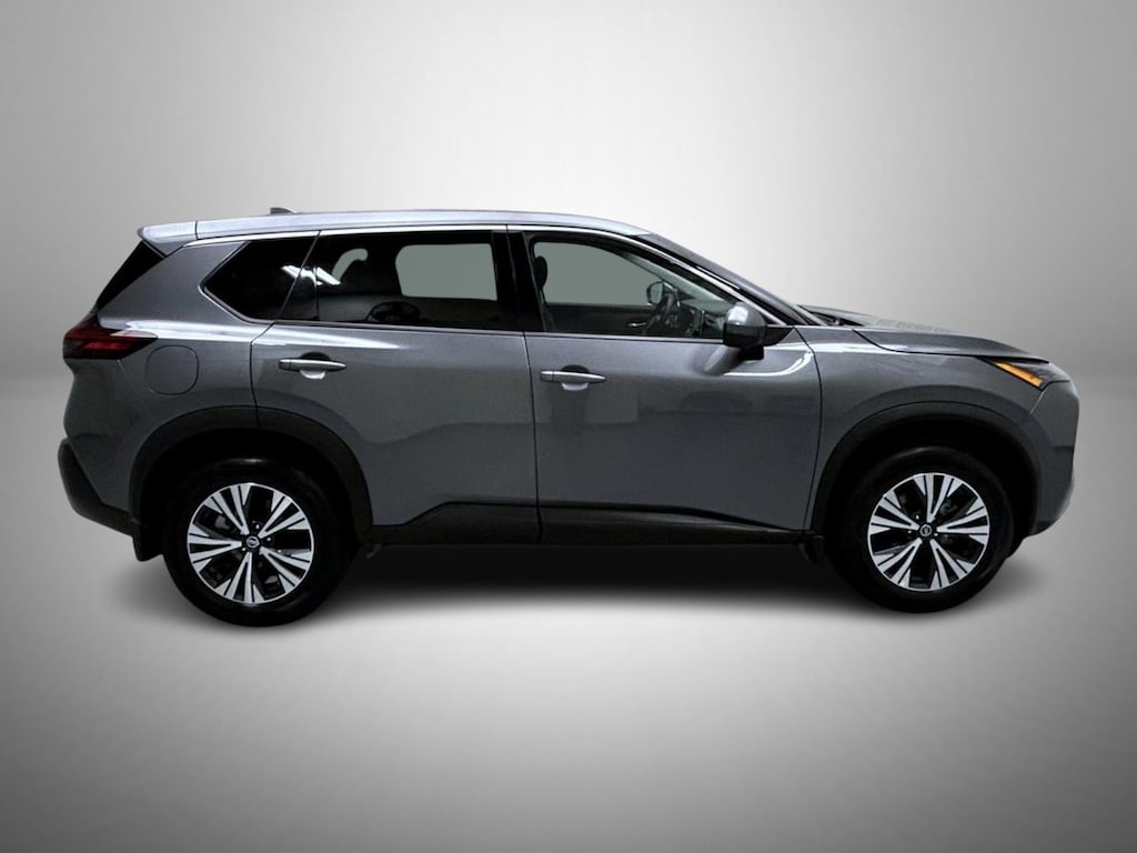 Gun Metallic 2021 Nissan Rogue SV AWD CVT with Xtronic 2.5L I4 DOHC 16V AWD, 18" Aluminum Alloy Wheels, 4-Wheel Disc Brakes, 5.604 Axle Ratio, 6 Speakers, ABS brakes, Air Conditioning, Alloy wheels, AM/FM Radio, AM/FM radio, Auto High-beam Headlights, Automatic temperature control, Black Splash Guards (Set of 4), Brake assist, Bumpers: body-color, Chrome Rear Bumper Protector, Cloth Seat Trim, Delay-off headlights, Driver door bin, Driver vanity mirror, Dual front impact airbags, Dual front side impact airbags, Electronic Stability Control, Emergency communication system: NissanConnect Services, First Aid Kit, Floor Mats w/1-Piece Cargo Area Protector, Four wheel independent suspension, Front anti-roll bar, Front Bucket Seats, Front Center Armrest, Front dual zone A/C, Front reading lights, Fully automatic headlights, Heated door mirrors, Illuminated entry, Knee airbag, Low tire pressure warning, NissanConnect featuring Apple CarPlay and Android Auto, Occupant sensing airbag, Outside temperature display, Overhead airbag, Overhead console, Panic alarm, Passenger door bin, Passenger vanity mirror, Power door mirrors, Power driver seat, Power steering, Power windows, Radio data system, Rear anti-roll bar, Rear Parking Sensors, Rear seat center armrest, Rear side impact airbag, Rear window defroster, Rear window wiper, Remote keyless entry, Security system, Speed control, Speed-Sensitive Wipers, Split folding rear seat, Spoiler, Steering wheel mounted audio controls, Tachometer, Telescoping steering wheel, Tilt steering wheel, Traction control, Trip computer, Turn signal indicator mirrors, Variably intermittent wipers, AWD.