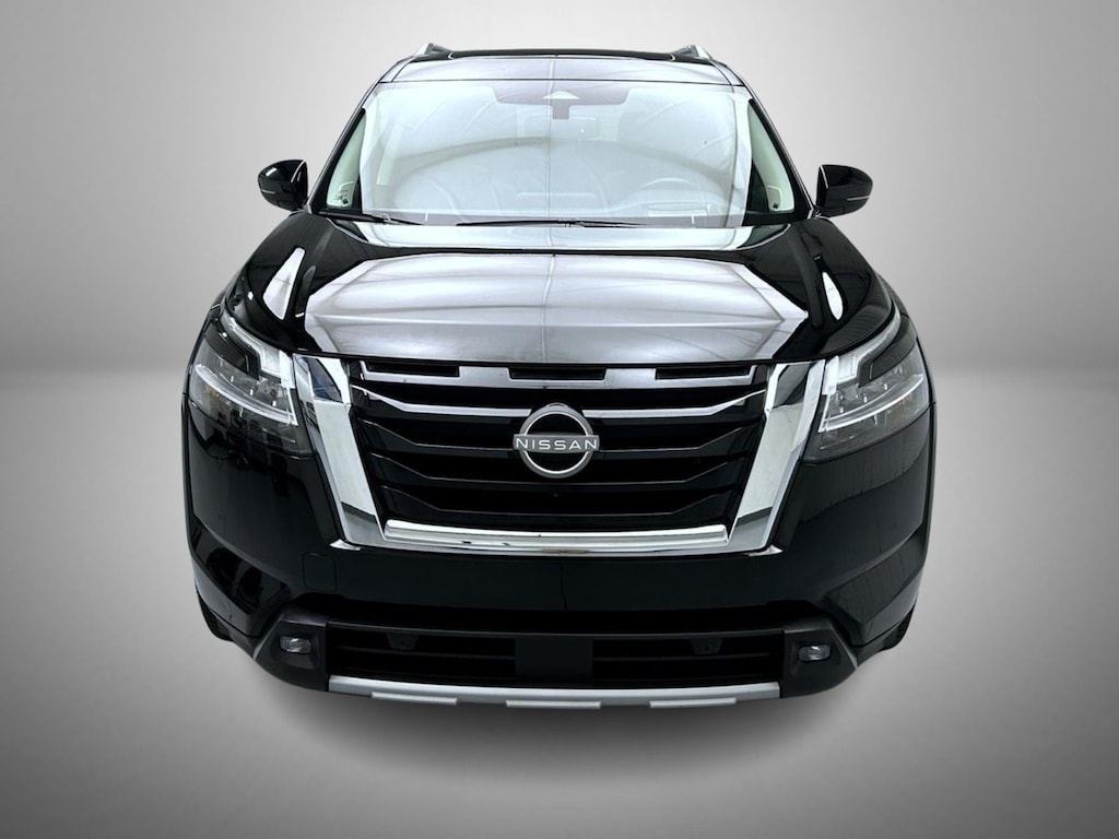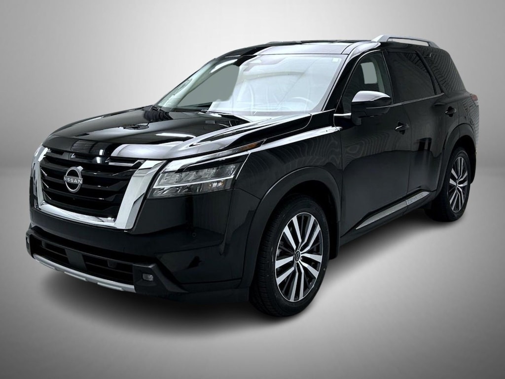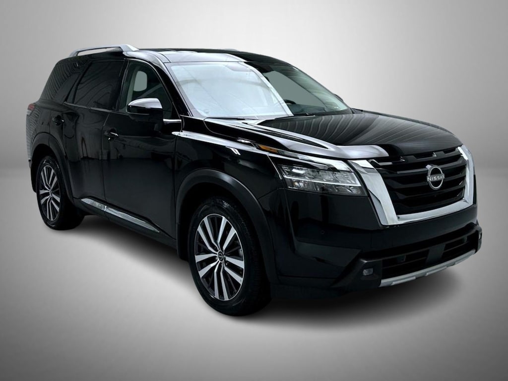 Super Black 2022 Nissan Pathfinder Platinum 4WD 9-Speed Automatic V6 4WD, 13 Speakers, 3rd row seats: bench, 4-Wheel Disc Brakes, ABS brakes, Air Conditioning, Alloy wheels, AM/FM radio: SiriusXM, Auto High-beam Headlights, Auto tilt-away steering wheel, Auto-dimming Rear-View mirror, Automatic temperature control, Axle Ratio: TBD, Black Splash Guards (Set of 4), Bodyside moldings, Bose Premium Audio System, Brake assist, Bumpers: body-color, Captain's Chairs Carpeted Floor Mats (Set of 4), Climate Controlled Front Bucket Seats, Delay-off headlights, Driver door bin, Driver vanity mirror, Dual front impact airbags, Dual front side impact airbags, Electronic Stability Control, Emergency communication system: NissanConnect Services, Exterior Parking Camera Rear, Four wheel independent suspension, Front anti-roll bar, Front Bucket Seats, Front Center Armrest, Front dual zone A/C, Front fog lights, Front reading lights, Fully automatic headlights, Garage door transmitter: HomeLink, Heads-Up Display, Heated door mirrors, Heated front seats, Heated rear seats, Heated steering wheel, Illuminated entry, Knee airbag, Leather steering wheel, Low tire pressure warning, Memory seat, Navigation system: NissanConnect Navigation, NissanConnect w/Navigation & Services, Occupant sensing airbag, Outside temperature display, Overhead airbag, Overhead console, Panic alarm, Passenger door bin, Passenger vanity mirror, Power door mirrors, Power driver seat, Power Liftgate, Power moonroof, Power passenger seat, Power steering, Power windows, Radio data system, Radio: AM/FM Audio System, Rain sensing wipers, Rear air conditioning, Rear anti-roll bar, Rear reading lights, Rear side impact airbag, Rear window defroster, Rear window wiper, Reclining 3rd row seat, Remote keyless entry, Security system, Semi-Aniline Leather Seating Surfaces, Speed control, Speed-sensing steering, Speed-Sensitive Wipers, Split folding rear seat, Spoiler, Steering wheel memory, Steering wheel mounted audio controls, Tachometer, Telescoping steering wheel, TFT Meter Delete, Tilt steering wheel, Traction control, Trip computer, Turn signal indicator mirrors, Variably intermittent wipers, Ventilated front seats, Wheels: 20" Alloy w/Unique Finish, 4WD.