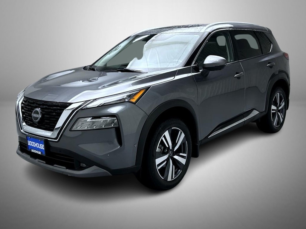 Gun Metallic 2022 Nissan Rogue SL AWD CVT with Xtronic 1.5L I3 Turbocharged DOHC 12V LEV3-ULEV50 201hp AWD, 19" Aluminum Alloy Wheels, 4-Wheel Disc Brakes, 5.604 Axle Ratio, 6 Speakers, ABS brakes, Air Conditioning, Alloy wheels, AM/FM Radio, AM/FM radio: SiriusXM, Auto High-beam Headlights, Auto-dimming Rear-View mirror, Automatic temperature control, Black Splash Guards (Set of 4), Bose Premium Audio System, Brake assist, Bumpers: body-color, Chrome Rear Bumper Protector, Delay-off headlights, Driver door bin, Driver vanity mirror, Dual front impact airbags, Dual front side impact airbags, Electronic Stability Control, Emergency communication system: NissanConnect Services, First Aid Kit, Floor Mats w/2-Piece Cargo Area Protector, Four wheel independent suspension, Frameless Rearview Mirror w/Universal Remote, Front anti-roll bar, Front Bucket Seats, Front Center Armrest, Front dual zone A/C, Front fog lights, Front reading lights, Front, Side & Rear Sonar, Fully automatic headlights, Heated door mirrors, Heated Front Bucket Seats, Heated front seats, Heated steering wheel, Illuminated entry, Knee airbag, Leather-Appointed Seat Trim, Low tire pressure warning, Memory seat, Nissan Door To Door Navigation, NissanConnect featuring Apple CarPlay and Android Auto, Occupant sensing airbag, Outside temperature display, Overhead airbag, Overhead console, Panic alarm, Passenger door bin, Passenger vanity mirror, Power door mirrors, Power driver seat, Power Liftgate, Power moonroof, Power passenger seat, Power steering, Power windows, ProPILOT Assist w/Navi-link, Radio data system, Rear air conditioning, Rear anti-roll bar, Rear Door Sunshades, Rear Parking Sensors, Rear reading lights, Rear seat center armrest, Rear side impact airbag, Rear window defroster, Rear window wiper, Remote keyless entry, Roof rack: rails only, Security system, SiriusXM Traffic, SL Premium Package, Speed control, Speed-Sensitive Wipers, Split folding rear seat, Spoiler, Steering wheel mounted audio controls, Tachometer, Telescoping steering wheel, Tilt steering wheel, Traction control, Trip computer, Turn signal indicator mirrors, Variably intermittent wipers, AWD.