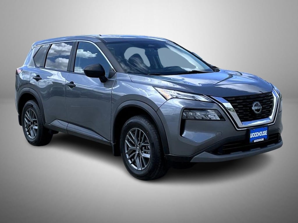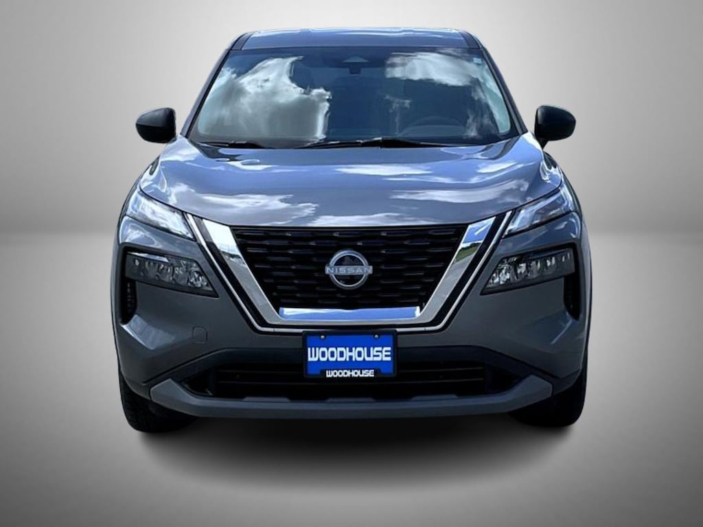Gun Metallic 2023 Nissan Rogue S AWD CVT with Xtronic 1.5L I3 Turbocharged DOHC 12V LEV3-ULEV50 201hp AWD, 17" Aluminum Alloy Wheels, 4 Speakers, 4-Wheel Disc Brakes, 5.604 Axle Ratio, ABS brakes, Air Conditioning, Alloy wheels, AM/FM Radio, AM/FM radio: SiriusXM, Auto High-beam Headlights, Black Splash Guards (Set of 4), Blind Spot Warning, Brake assist, Bumpers: body-color, Cloth Seat Trim, Delay-off headlights, Driver door bin, Driver vanity mirror, Dual front impact airbags, Dual front side impact airbags, Electronic Stability Control, First Aid Kit, Floor Mats w/1-Piece Cargo Area Protector, Four wheel independent suspension, Front anti-roll bar, Front Bucket Seats, Front Center Armrest, Front reading lights, Fully automatic headlights, Illuminated entry, Knee airbag, Low tire pressure warning, NissanConnect featuring Apple CarPlay and Android Auto, Occupant sensing airbag, Outside temperature display, Overhead airbag, Overhead console, Panic alarm, Passenger door bin, Passenger vanity mirror, Power door mirrors, Power steering, Power windows, Radio data system, Rear anti-roll bar, Rear Parking Sensors, Rear seat center armrest, Rear side impact airbag, Rear window defroster, Rear window wiper, Remote keyless entry, Speed control, Speed-Sensitive Wipers, Split folding rear seat, Spoiler, Steering wheel mounted audio controls, Tachometer, Telescoping steering wheel, Tilt steering wheel, Traction control, Trip computer, Variably intermittent wipers, AWD.