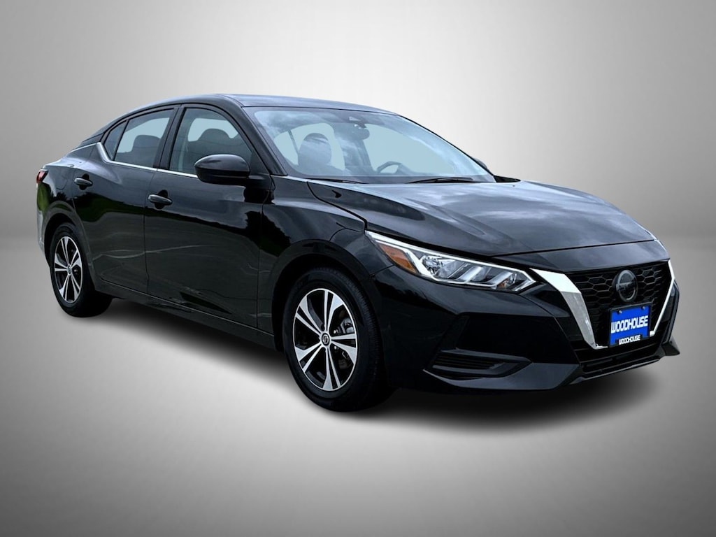 Super Black 2023 Nissan Sentra SV FWD CVT with Xtronic 2.0L DOHC CVT with Xtronic, Charcoal Cloth, 16" Alloy Wheels, 4-Wheel Disc Brakes, 6 Speakers, ABS brakes, Air Conditioning, All-Weather Package, Alloy wheels, AM/FM radio: SiriusXM, Auto High-beam Headlights, Blind Spot Warning, Brake assist, Bumpers: body-color, Carpeted Floor Mats w/Trunk Mat, Clear Rear Bumper Protector, Delay-off headlights, Driver door bin, Driver vanity mirror, Dual front impact airbags, Dual front side impact airbags, Dual Zone Auto Climate Control, Electronic Stability Control, Four wheel independent suspension, Front anti-roll bar, Front Bucket Seats, Front Center Armrest, Front reading lights, Fully automatic headlights, Heated door mirrors, Heated Front Seats, Illuminated entry, Knee airbag, Leather-Wrapped Heated Steering Wheel, Low tire pressure warning, Midyear Change, NissanConnect featuring Apple CarPlay and Android Auto, Occupant sensing airbag, Outside temperature display, Overhead airbag, Overhead console, Panic alarm, Passenger door bin, Passenger vanity mirror, Power door mirrors, Power steering, Power windows, Premium Cloth Seat Trim, Radio data system, Radio: AM/FM w/RDS/MP3/Aux-In, Rear anti-roll bar, Rear Parking Sensors, Rear side impact airbag, Rear window defroster, Remote Engine Start, Remote keyless entry, Security system, Speed control, Speed-sensing steering, Split folding rear seat, Steering wheel mounted audio controls, Tachometer, Telescoping steering wheel, Tilt steering wheel, Traction control, Trip computer, Variably intermittent wipers, CVT with Xtronic, Charcoal Cloth.