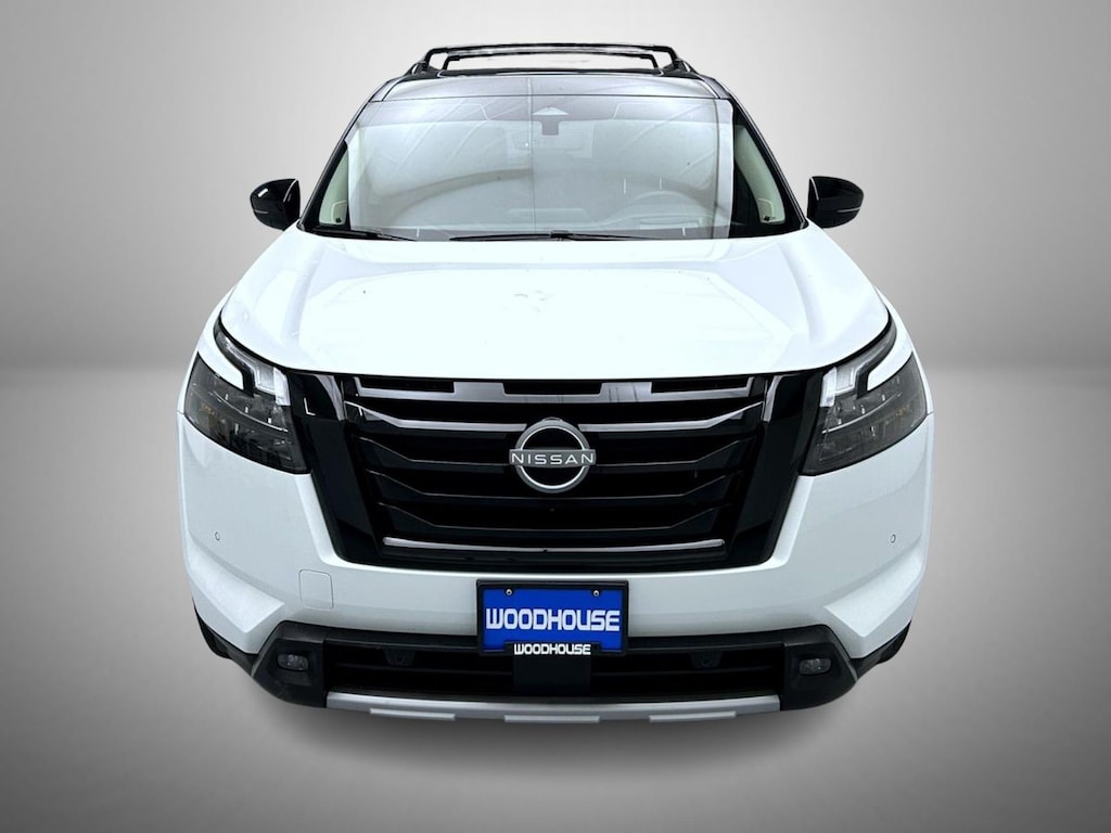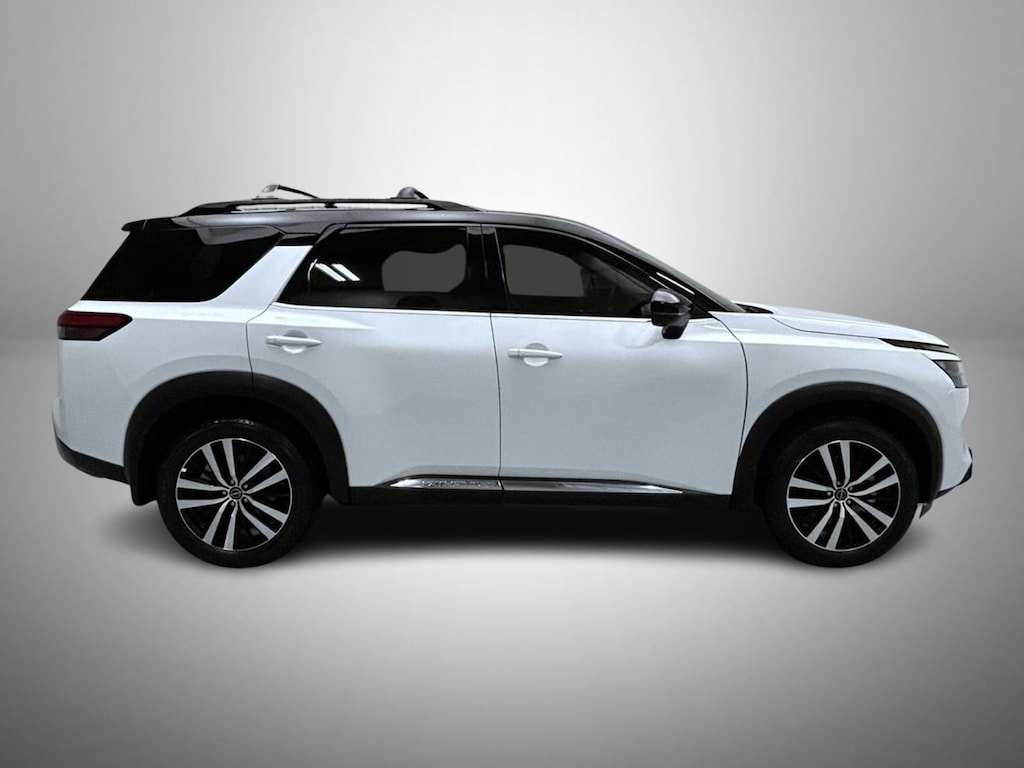 Everest White Pearl Tricoat/Super Black 2025 Nissan Pathfinder Platinum 4WD 9-Speed Automatic 3.5L V6 DOHC 4WD, 13 Speakers, 3rd row seats: bench, 4-Wheel Disc Brakes, ABS brakes, Air Conditioning, Alloy wheels, AM/FM radio: SiriusXM, Auto High-beam Headlights, Auto tilt-away steering wheel, Auto-dimming Rear-View mirror, Automatic temperature control, Bench Seat Carpeted Floor Mats (Set of 4), Black Appearance Package, Black Grille, Black Liftgate Emblems, Black Splash Guards (Set of 4), Bodyside moldings, Bose Premium Audio System, Brake assist, Bumpers: body-color, Cargo Area Protector, Cargo Net, Cargo Package, Climate Controlled Front Bucket Seats, Cross Bars, Delay-off headlights, Driver door bin, Driver vanity mirror, Dual front impact airbags, Dual front side impact airbags, Electronic Stability Control, Emergency communication system, Exterior Parking Camera Rear, First Aid, Four wheel independent suspension, Front anti-roll bar, Front Bucket Seats, Front Center Armrest, Front dual zone A/C, Front reading lights, Fully automatic headlights, Garage door transmitter: HomeLink, Heads-Up Display, Heated door mirrors, Heated front seats, Heated rear seats, Heated steering wheel, Illuminated entry, Knee airbag, Leather steering wheel, LED Fog Lamps, Low tire pressure warning, Memory seat, Navigation system: NissanConnect with Navigation and Services, NissanConnect featuring Apple CarPlay and Android Auto, NissanConnect w/Navigation & Services, Occupant sensing airbag, Outside temperature display, Overhead airbag, Overhead console, Panic alarm, Passenger door bin, Passenger vanity mirror, Power door mirrors, Power driver seat, Power Liftgate, Power moonroof, Power passenger seat, Power steering, Power windows, Premium Paint & 2-Tone Roof, Radio data system, Radio: AM/FM Audio System, Rain sensing wipers, Rear air conditioning, Rear anti-roll bar, Rear reading lights, Rear seat center armrest, Rear side impact airbag, Rear window defroster, Rear window wiper, Reclining 3rd row seat, Remote keyless entry, Running Boards, Security system, Semi-Aniline Leather-Appointed Seating Surfaces, Speed control, Speed-sensing steering, Speed-Sensitive Wipers, Split folding rear seat, Spoiler, Steering wheel memory, Steering wheel mounted audio controls, Tachometer, Telescoping steering wheel, Tilt steering wheel, Traction control, Trip computer, Turn signal indicator mirrors, Variably intermittent wipers, Ventilated front seats, Wheels: 20" x 8J Machined Alloy, 4WD.