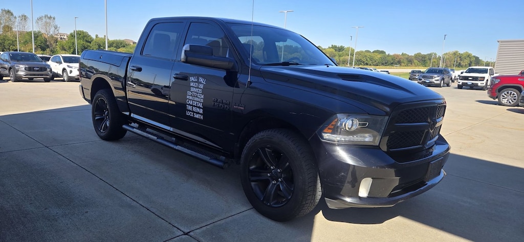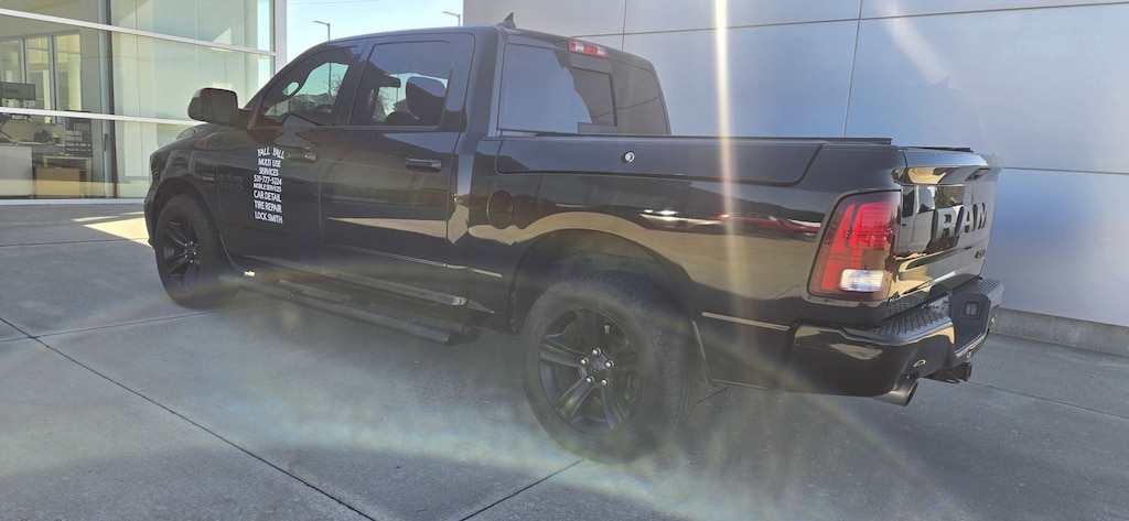 Brilliant Black Crystal Pearlcoat 2017 Ram 1500 Night 4WD 8-Speed Automatic HEMI 5.7L V8 Multi Displacement VVT 1 Yr. Trial (Registration Required), 115V Auxiliary Power Outlet, 20" x 9" Polished Aluminum Wheels, 4 Adjustable Cargo Tie-Down Hooks, 4-Wheel Disc Brakes, 4x4 Flat Black Badge, 5-Year SiriusXM Traffic Service, 5-Year SiriusXM Travel Link Service, 6 Speakers, 8.4" Touchscreen Display, 9 Alpine Speakers w/Subwoofer, ABS brakes, Active Grille Shutters, Adjustable pedals, Air Conditioning, Alloy wheels, AM/FM radio, Anti-Spin Differential Rear Axle, Audio Jack Input for Mobile Devices, Auto High Beam Headlamp Control, Auto-dimming door mirrors, Auto-dimming Rear-View mirror, Automatic temperature control, Bed Cargo Divider/Extender, Black Exterior Mirrors, Black Painted Honeycomb Grille, Black Ram Tailgate Nameplate, Brake assist, Bright Rotary Shifter, Bucket Seats, Bumpers: body-color, Center Hub, Class IV Receiver Hitch, Cloth Bucket Seats, Compass, Convenience Group, Delay-off headlights, Driver door bin, Driver vanity mirror, Dual front impact airbags, Dual front side impact airbags, Dual Rear Exhaust w/Bright Tips, Electronic Shift, Electronic Stability Control, Electronically Controlled Throttle, Emergency communication system: Uconnect Access, Flat Black 5.7L Hemi Badge, Flat Black Ram 1500 Badge, Folding Flat Load Floor Storage, Front & Rear Rubber Floor Mats, Front anti-roll bar, Front Bucket Seats, Front Center Armrest w/Storage, Front dual zone A/C, Front fog lights, Front reading lights, Front wheel independent suspension, Full Length Upgraded Floor Console, Fully automatic headlights, Garage door transmitter, GPS Antenna Input, GPS Navigation, HD Radio, Heated door mirrors, Heated Front Seats, Heated front seats, Heated Seats & Wheel Group, Heated Steering Wheel, Heated steering wheel, Heavy-Duty Engine Cooling, High Back Seats, Illuminated entry, Integrated Voice Command w/Bluetooth, Keyless Enter-N-Go, Leather steering wheel, LED Bed Lighting, Low tire pressure warning, Media Hub (USB, AUX), Next Generation Engine Controller, Occupant sensing airbag, Outside temperature display, Overhead airbag, Overhead console, Panic alarm, ParkView Rear Back-Up Camera, Passenger door bin, Passenger vanity mirror, Power Black Trailer Tow Mirrors, Power door mirrors, Power driver seat, Power Lumbar Adjust, Power steering, Power Sunroof, Power windows, Premium Sound Group, Quick Order Package 26Q Night, Radio data system, Radio: Uconnect 3C Nav w/8.4" Display, Radio: Uconnect 3C w/8.4" Display, Rain Sensitive Windshield Wipers, Ram 1500 Night Special Edition, RamBox Cargo Management System, Rear 60/40 Split Folding Seat, Rear anti-roll bar, Rear seat center armrest, Rear step bumper, Remote keyless entry, Remote Proximity Keyless Entry, Remote USB Port, SIRIUSXM Satellite Radio, SIRIUSXM Traffic, SiriusXM Travel Link, Speed control, Split folding rear seat, Sport Performance Hood, Steering wheel mounted audio controls, Tachometer, Tilt steering wheel, Tip Start, Traction control, Trailer Brake Control, Trailer Tow Mirrors, Trailer Tow Mirrors & Brake Group, Trip computer, Turn signal indicator mirrors, Uconnect Access, Uconnect Access 1 Year Trial, Variably intermittent wipers, Voltmeter, Wheels: 20" x 9" Semi-Gloss Black Aluminum.