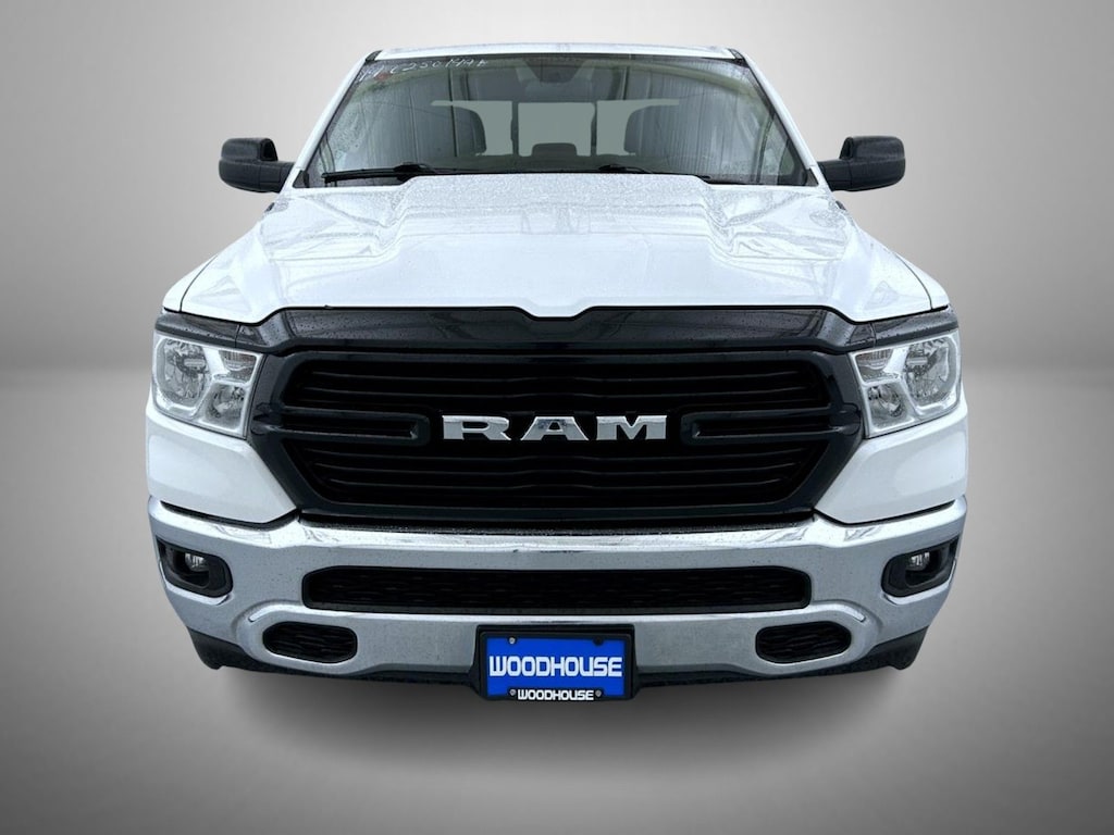 Bright White Clearcoat 2019 Ram 1500 Big Horn/Lone Star 4WD 8-Speed Automatic 3.6L V6 24V VVT 3 Rear Seat Head Restraints, 4 Way Front Headrests, 4-Wheel Disc Brakes, 48V Belt Starter Generator, 6 Speakers, ABS brakes, Air Conditioning, Alloy wheels, AM/FM radio, Brake assist, Bumpers: chrome, Cloth Bench Seat, Compass, Delay-off headlights, Driver door bin, Dual front impact airbags, Dual front side impact airbags, Electronic Stability Control, Front anti-roll bar, Front Center Armrest w/Storage, Front fog lights, Front reading lights, Front Seat Back Map Pockets, Front wheel independent suspension, Fully automatic headlights, GPS Antenna Input, Heated door mirrors, Illuminated entry, Leather steering wheel, Low tire pressure warning, Occupant sensing airbag, Outside temperature display, Overhead airbag, Overhead console, Panic alarm, ParkView Rear Back-Up Camera, Passenger door bin, Passenger vanity mirror, Power door mirrors, Power steering, Power windows, Quick Order Package 23Z Big Horn/Lone Star, Radio data system, Radio: Uconnect 3 w/5" Display, Rear 60/40 Folding Seat, Rear anti-roll bar, Rear seat center armrest, Rear step bumper, Remote keyless entry, Remote Start System, Speed control, Split folding rear seat, Steering Wheel Mounted Audio Controls, Tachometer, Telescoping steering wheel, Tilt steering wheel, Traction control, Trip computer, Variably intermittent wipers, Voltmeter, Wheels: 18" x 8".