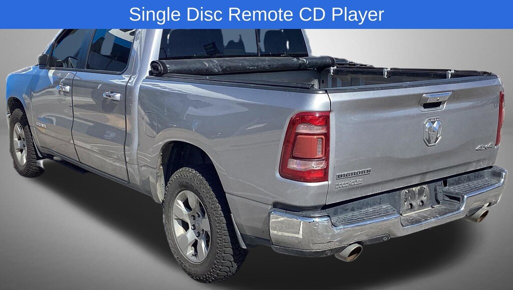 Billet Silver Metallic Clearcoat 2019 Ram 1500 Big Horn/Lone Star 4WD 8-Speed Automatic HEMI 5.7L V8 Multi Displacement VVT 1-Year SiriusXM Radio Service, 8.4" Touchscreen Display, Air Conditioning ATC w/Dual Zone Control, Apple CarPlay, Auto-Dimming Exterior Driver Mirror, Auto-Dimming Rear-View Mirror, Big Horn IP Badge, Big Horn Non-BSG Level 2 Equipment Group (DISC), Class IV Receiver Hitch, Cluster 7.0" TFT Color Display, Dampened Tailgate, Exterior Mirrors Courtesy Lamps, Exterior Mirrors w/Supplemental Signals, Foam Bottle Insert (Door Trim Panel), For More Info, Call 800-643-2112, Front LED Fog Lamps, Glove Box Lamp, Google Android Auto, Heated Front Seats, Heated Steering Wheel, Integrated Center Stack Radio, LED Reflector Headlamps, LED Taillamps, ParkSense Front/Rear Park Assist w/Stop, Power 4-Way Driver Lumbar Adjust, Power 8-Way Driver Seat, Power Adjustable Pedals, Power Heated Fold Away Mirrors, Power-Folding Mirrors, Premium Lighting Group, Radio: Uconnect 4 w/8.4" Display, Rear Dome w/On/Off Switch Lamp, Rear Power Sliding Window, Rear Window Defroster, Remote Start System, Security Alarm, Single Disc Remote CD Player, SiriusXM Satellite Radio, Sun Visors w/Illuminated Vanity Mirrors, Universal Garage Door Opener, 3 Rear Seat Head Restraints, 3.21 Rear Axle Ratio, 4 Way Front Headrests, 4-Wheel Disc Brakes, 48V Belt Starter Generator, 6 Speakers, ABS brakes, Air Conditioning, Alloy wheels, AM/FM radio, Brake assist, Bumpers: chrome, Cloth Bench Seat, Compass, Delay-off headlights, Driver door bin, Dual front impact airbags, Dual front side impact airbags, Electronic Stability Control, Front anti-roll bar, Front Center Armrest w/Storage, Front fog lights, Front reading lights, Front Seat Back Map Pockets, Front wheel independent suspension, Fully automatic headlights, GPS Antenna Input, Heated door mirrors, Illuminated entry, Leather steering wheel, Low tire pressure warning, Manufacturer's Statement of Origin, Occupant sensing airbag, Outside temperature display, Overhead airbag, Overhead console, Panic alarm, ParkView Rear Back-Up Camera, Passenger door bin, Passenger vanity mirror, Power door mirrors, Power steering, Power windows, Quick Order Package 25Z Big Horn/Lone Star, Radio data system, Radio: Uconnect 3 w/5" Display, Rear 60/40 Folding Seat, Rear anti-roll bar, Rear seat center armrest, Rear step bumper, Remote keyless entry, Speed control, Split folding rear seat, Steering Wheel Mounted Audio Controls, Tachometer, Telescoping steering wheel, Tilt steering wheel, Traction control, Trip computer, Variably intermittent wipers, Voltmeter, Wheels: 18" x 8", 1-Year SiriusXM Radio Service, 8.4" Touchscreen Display, Air Conditioning ATC w/Dual Zone Control, Apple CarPlay, Auto-Dimming Exterior Driver Mirror, Auto-Dimming Rear-View Mirror, Big Horn IP Badge, Big Horn Non-BSG Level 2 Equipment Group (DISC), Class IV Receiver Hitch, Cluster 7.0" TFT Color Display, Dampened Tailgate, Exterior Mirrors Courtesy Lamps, Exterior Mirrors w/Supplemental Signals, Foam Bottle Insert (Door Trim Panel), For More Info, Call 800-643-2112, Front LED Fog Lamps, Glove Box Lamp, Google Android Auto, Heated Front Seats, Heated Steering Wheel, Integrated Center Stack Radio, LED Reflector Headlamps, LED Taillamps, ParkSense Front/Rear Park Assist w/Stop, Power 4-Way Driver Lumbar Adjust, Power 8-Way Driver Seat, Power Adjustable Pedals, Power Heated Fold Away Mirrors, Power-Folding Mirrors, Premium Lighting Group, Radio: Uconnect 4 w/8.4" Display, Rear Dome w/On/Off Switch Lamp, Rear Power Sliding Window, Rear Window Defroster, Remote Start System, Security Alarm, Single Disc Remote CD Player, SiriusXM Satellite Radio, Sun Visors w/Illuminated Vanity Mirrors, Universal Garage Door Opener.