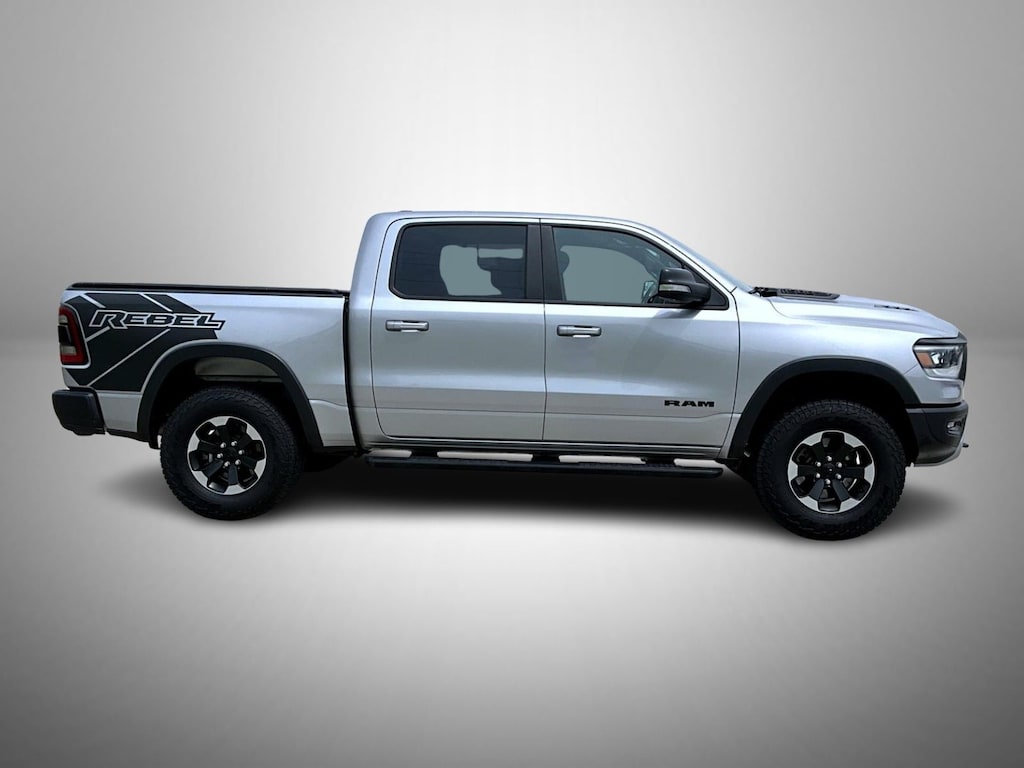 Billet Silver Metallic Clearcoat 2020 Ram 1500 Rebel 4WD 8-Speed Automatic HEMI 5.7L V8 Multi Displacement VVT 3.92 Rear Axle Ratio, 4 Way Front Headrests, 4-Wheel Disc Brakes, 48V Belt Starter Generator, 6 Speakers, ABS brakes, Air Conditioning, Alloy wheels, AM/FM radio: SiriusXM, Auto-Dimming Rear-View Mirror, Black Premium Power Mirrors, Black Tubular Side Steps, Body Color Door Handles, Brake assist, Bucket Seats, Cloth/Vinyl Low Back Bucket Seats, Compass, Delay-off headlights, Driver door bin, Dual front impact airbags, Dual front side impact airbags, Electronic Stability Control, Engine Block Heater, Foam Bottle Insert (Door Trim Panel), Front anti-roll bar, Front Bucket Seats, Front Center Armrest w/Storage, Front fog lights, Front reading lights, Front Seat Back Map Pockets, Front wheel independent suspension, Full Length Upgraded Floor Console, Fully automatic headlights, GPS Antenna Input, Heated door mirrors, Heated Front Seats, Heated Steering Wheel, Illuminated entry, Leather steering wheel, Low tire pressure warning, Occupant sensing airbag, Outside temperature display, Overhead airbag, Overhead console, Panic alarm, ParkSense Front/Rear Park Assist w/Stop, ParkView Rear Back-Up Camera, Passenger door bin, Passenger vanity mirror, Power 4-Way Driver Lumbar Adjust, Power Adjustable Pedals, Power door mirrors, Power driver seat, Power steering, Power windows, Quick Order Package 25W Rebel, Radio data system, Radio: Uconnect 3 w/5" Display, Radio: Uconnect 4 w/8.4" Display, Rear 60/40 Folding Seat, Rear anti-roll bar, Rear Dome w/On/Off Switch Lamp, Rear seat center armrest, Rear step bumper, Rear Window Defroster, Rebel Exterior Side Graphics, Rebel Hood Decal, Rebel Level 1 Equipment Group, Remote keyless entry, Remote Start System, Single Disc Remote CD Player, SiriusXM Satellite Radio, Speed control, Split folding rear seat, Spray In Bedliner, Steering wheel mounted audio controls, Sun Visors w/Illuminated Vanity Mirrors, Tachometer, Telescoping steering wheel, Tilt steering wheel, Traction control, Trailer Brake Control, Trip computer, Universal Garage Door Opener, Variably intermittent wipers, Voltmeter, Wheels: 18" x 8" Painted Black.