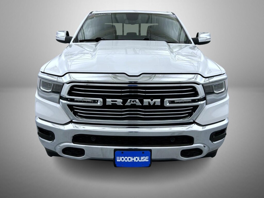 Bright White Clearcoat 2020 Ram 1500 Laramie 4WD 8-Speed Automatic HEMI 5.7L V8 Multi Displacement VVT #1 Seat Foam Cushion, 10 Speakers, 3 Rear Seat Head Restraints, 3.21 Rear Axle Ratio, 33 Gallon Fuel Tank, 4 Way Front Headrests, 4-Wheel Disc Brakes, 48V Belt Starter Generator, 8.4" Touchscreen Display, ABS brakes, Adjustable pedals, Air Conditioning, Alloy wheels, AM/FM radio: SiriusXM, Apple CarPlay, Apple CarPlay/Android Auto, Audio memory, Auto-dimming door mirrors, Auto-dimming Rear-View mirror, Automatic temperature control, Brake assist, Bumpers: chrome, Compass, Delay-off headlights, Driver door bin, Driver Seat Memory, Driver vanity mirror, Dual front impact airbags, Dual front side impact airbags, Electronic Stability Control, Front & Rear Rubber Floor Mats, Front anti-roll bar, Front Center Armrest w/Storage, Front dual zone A/C, Front fog lights, Front reading lights, Front Seat Back Map Pockets, Front wheel independent suspension, Fully automatic headlights, Garage door transmitter, Google Android Auto, GPS Antenna Input, Heated door mirrors, Heated Front Seats, Heated front seats, Heated Steering Wheel, Heated steering wheel, Illuminated entry, Integrated Center Stack Radio, Laramie Level 1 Equipment Group, Leather steering wheel, Leather Trim 40/20/40 Bench Seat, Low tire pressure warning, Memory seat, Occupant sensing airbag, Outside temperature display, Overhead airbag, Overhead console, Panic alarm, ParkSense Front/Rear Park Assist w/Stop (DISC), ParkView Rear Back-Up Camera, Passenger door bin, Passenger vanity mirror, Pedal memory, Power 4-Way Driver Lumbar Adjust, Power 4-Way Passenger Lumbar Adjust, Power 8-Way Driver & Passenger Seats, Power door mirrors, Power driver seat, Power passenger seat, Power steering, Power windows, Quick Order Package 25H Laramie, Radio data system, Radio: Uconnect 4 w/8.4" Display, Rear anti-roll bar, Rear seat center armrest, Rear step bumper, Rear Wheelhouse Liners, Rear window defroster, Remote keyless entry, Security system, SiriusXM Satellite Radio, Speed control, Split folding rear seat, Steering wheel mounted audio controls, Tachometer, Telescoping steering wheel, Tilt steering wheel, Traction control, Trailer Brake Control, Trip computer, Turn signal indicator mirrors, Variably intermittent wipers, Ventilated Front Seats, Ventilated front seats, Voltmeter, Wheels: 18" x 8" Aluminum Base Painted, Wheels: 20" x 9" Premium Paint/Polished.