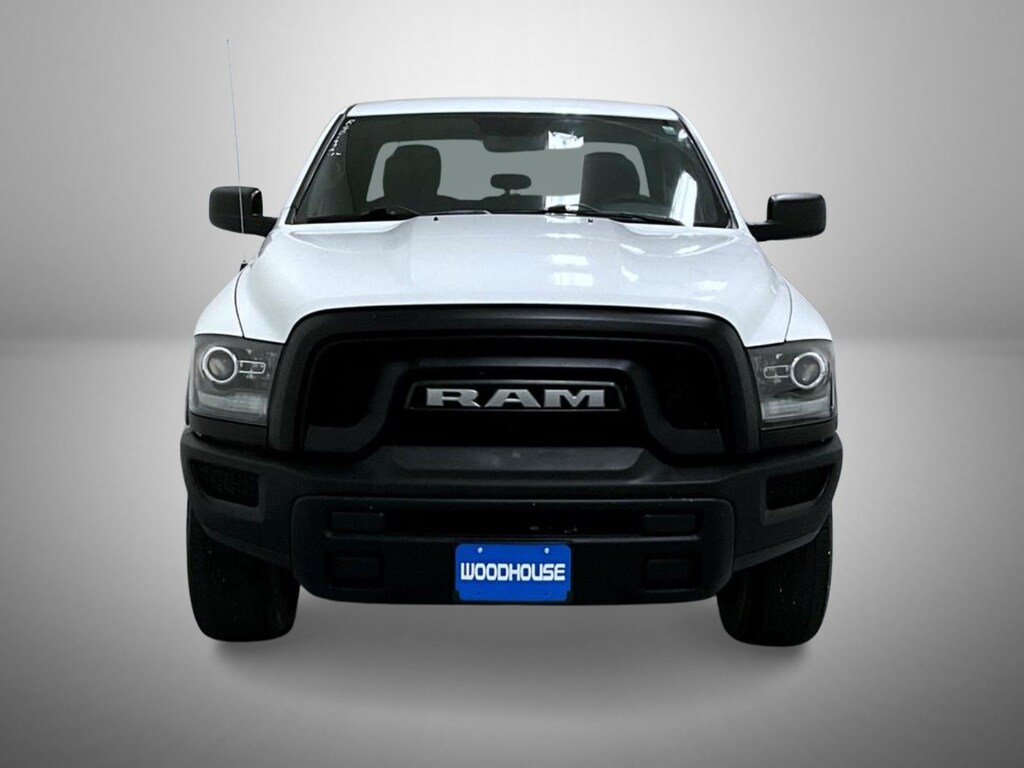 Bright White Clearcoat 2021 Ram 1500 Classic Warlock 4WD 8-Speed Automatic HEMI 5.7L V8 Multi Displacement VVT 1-Year SiriusXM Guardian Trial, 3.21 Rear Axle Ratio, 4-Wheel Disc Brakes, 40/20/40 Split Bench Seat, 4x4 Flat Black Badge, 6 Speakers, 8.4" Touchscreen Display, ABS brakes, Active Grille Shutters, Air Conditioning, Air Conditioning ATC w/Dual Zone Control, Alloy wheels, AM/FM radio: SiriusXM, Apple CarPlay, Bi-Function Halogen Projector Headlamps, Black Door Handles, Black Exterior Mirrors, Black Exterior Truck Badging, Black Grille w/RAM Lettering, Black Headlamp Filler Panel, Black Powder Coated Front Bumper, Black Powder Coated Rear Bumper, Black RAM Head Tailgate Badge, Black Wheel Flares, Brake assist, Bumpers: chrome, Center Hub, Charge Only Remote USB Port, Cloth 40/20/40 Bench Seat, Cluster 7.0" TFT Color Display, Compass, Delay-off headlights, Driver door bin, Dual front impact airbags, Dual front side impact airbags, Dual Rear Exhaust w/Bright Tips, Electronic Shift, Electronic Stability Control, Electronics Group, Exterior Mirrors w/Heating Element, Front anti-roll bar, Front Armrest w/3 Cupholders, Front Center Armrest w/Storage, Front License Plate Bracket, Front reading lights, Front wheel independent suspension, Front Wheel Well Liners, Fully automatic headlights, Google Android Auto, GPS Antenna Input, HD Radio, Heated door mirrors, Illuminated entry, Integrated Voice Command w/Bluetooth, Low tire pressure warning, Manufacturer's Statement of Origin, Media Hub (2 USB, AUX), MOPAR Front & Rear Rubber Floor Mats, Occupant sensing airbag, Outside temperature display, Overhead airbag, Overhead console, Panic alarm, ParkSense Rear Park Assist System, ParkView Rear Back-Up Camera, Passenger door bin, Passenger vanity mirror, Power door mirrors, Power steering, Power windows, Quick Order Package 26F Warlock, Radio data system, Radio: Uconnect 3 w/5" Display, Radio: Uconnect 4C w/8.4" Display, Raised Ride Height, Rear anti-roll bar, Rear Extra HD Shock Absorbers, Rear step bumper, Remote keyless entry, Remote Start & Security Alarm Group, Remote Start System, Rotary Shifter-Black, Security Alarm, Semi-Gloss Black Hub, Speed control, Sport Tail Lamps, Tachometer, Tilt steering wheel, Tip Start, Traction control, Trip computer, USB Host Flip, Variably intermittent wipers, Voltmeter, Warlock, Warlock Interior Accents, Wheels: 20" x 9" Semi-Gloss Black Aluminum.