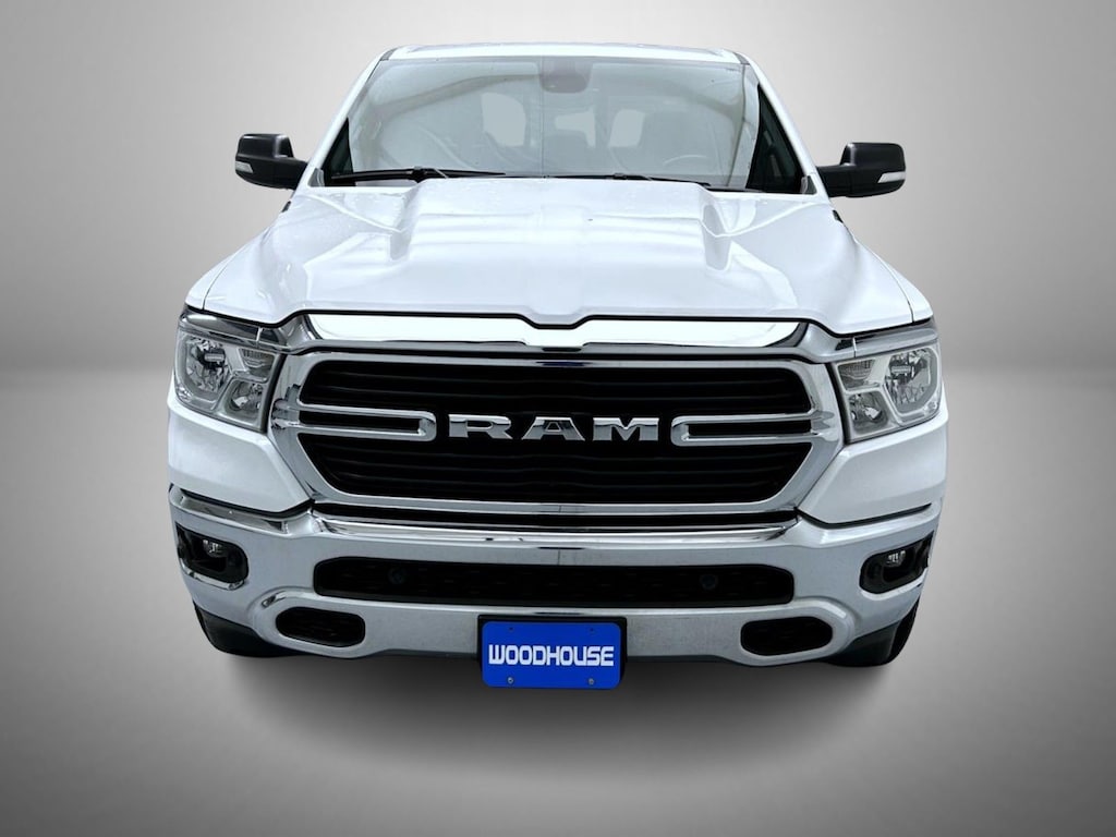 Bright White Clearcoat 2021 Ram 1500 Big Horn/Lone Star 4WD 8-Speed Automatic HEMI 5.7L V8 Multi Displacement VVT 115V Auxiliary Power Outlet, 3 Rear Seat Head Restraints, 3.21 Rear Axle Ratio, 4 Way Front Headrests, 4-Wheel Disc Brakes, 40/20/40 Split Bench Seat, 400W Inverter, 48V Belt Starter Generator, 6 Speakers, 9 Amplified Speakers w/Subwoofer, ABS brakes, Air Conditioning, Alloy wheels, AM/FM radio, Anti-Spin Differential Rear Axle, Big Horn Level 2 Equipment Group, Black Exterior Mirrors, Brake assist, Bumpers: chrome, Cloth Bench Seat, Compass, Delay-off headlights, Driver door bin, Dual front impact airbags, Dual front side impact airbags, Electronic Stability Control, Front anti-roll bar, Front Center Armrest w/Storage, Front fog lights, Front License Plate Bracket, Front reading lights, Front Seat Back Map Pockets, Front wheel independent suspension, Fully automatic headlights, GPS Antenna Input, Heated door mirrors, Illuminated entry, Integrated Voice Command w/Bluetooth, Leather steering wheel, Low tire pressure warning, MOPAR Front & Rear Rubber Floor Mats, Occupant sensing airbag, Outside temperature display, Overhead airbag, Overhead console, Panic alarm, ParkSense Front/Rear Park Assist w/Stop, ParkView Rear Back-Up Camera, Passenger door bin, Passenger vanity mirror, Power door mirrors, Power steering, Power windows, Quick Order Package 27Z Big Horn, Radio data system, Radio: Uconnect 3 w/5" Display, Radio: Uconnect 4 w/8.4" Display, Rear 60/40 Folding Seat, Rear anti-roll bar, Rear seat center armrest, Rear step bumper, Rear Underseat Compartment Storage, Rear Wheelhouse Liners, Remote keyless entry, Remote Start System, Speed control, Split folding rear seat, Steering wheel mounted audio controls, Tachometer, Telescoping steering wheel, Tilt steering wheel, Traction control, Trip computer, Variably intermittent wipers, Voltmeter, Wheels: 18" x 8" Cast-Aluminum Painted, Wheels: 20" x 9" Aluminum Chrome Clad (WRK).