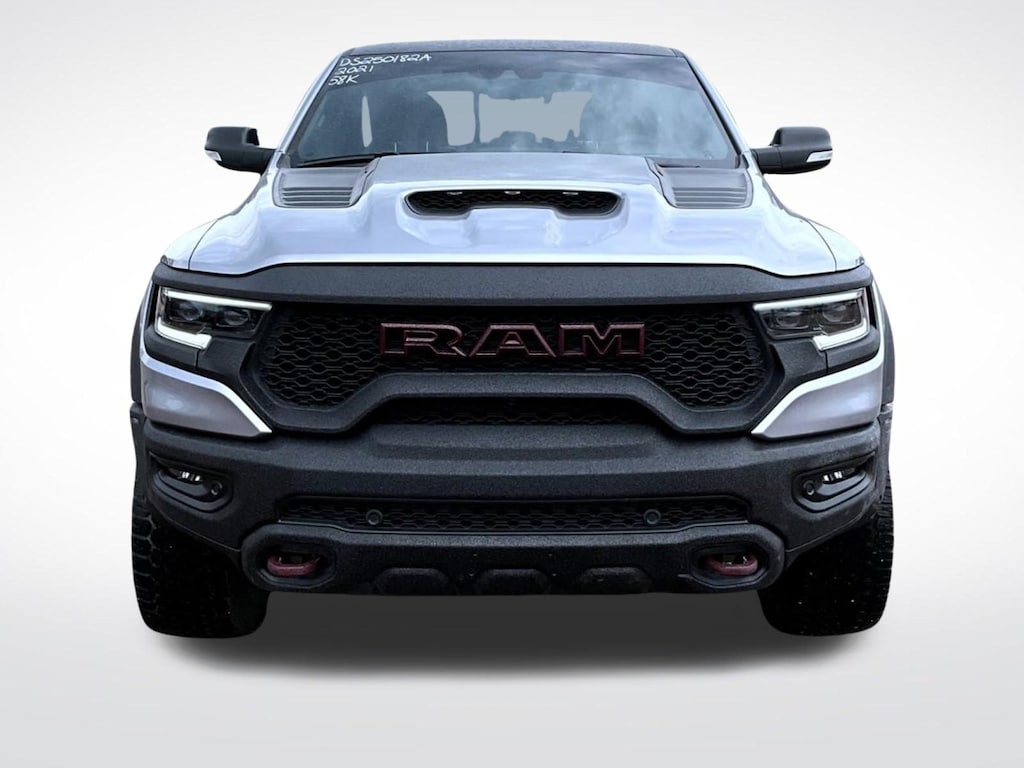 Billet Silver Metallic Clearcoat 2021 Ram 1500 TRX 4WD 8-Speed Automatic 6.2L Supercharged HEMI V8 SRT 10 Speakers, 3.55 Rear Axle Ratio, 4 Way Front Headrests, 4-Wheel Disc Brakes, ABS brakes, Adaptive Cruise Control w/Stop & Go, Adaptive suspension, Advanced Safety Group, Air Conditioning, Alloy wheels, AM/FM radio: SiriusXM with 360L, Apple CarPlay/Android Auto, Auto High-beam Headlights, Auto-dimming door mirrors, Auto-dimming Rear-View mirror, Automatic temperature control, Bed Utility Group, Black Exterior Mirrors, Blind Spot & Cross Path Detection, Body Color Door Handles, Brake assist, Bucket Seats, Cloth/Vinyl Bucket Seats, Compass, Delay-off headlights, Dome Dual LED Reading Lamp, Driver door bin, Driver Seat Memory, Driver/Passenger Wrapped Assist Handles, Dual front impact airbags, Dual front side impact airbags, Dual-Pane Panoramic Sunroof, Electronic Stability Control, Emergency communication system: SiriusXM Guardian, Exterior Mirrors Courtesy Lamps, Exterior Mirrors w/Heating Element, Exterior Mirrors w/Memory, Exterior Mirrors w/Supplemental Signals, Front anti-roll bar, Front Bucket Seats, Front Center Armrest w/Storage, Front Door Accent Lighting, Front dual zone A/C, Front fog lights, Front License Plate Bracket, Front reading lights, Front wheel independent suspension, Full Length Premium Upgraded Floor Console, Fully automatic headlights, Heads-Up Display, Heated door mirrors, Heated Front Seats, Heated Second Row Seats, Heated Steering Wheel, Illuminated entry, IP LED Ambient Light Pipe, Lane Keep Assist, Leather Shift Knob, Leather steering wheel, Leather Trimmed Bucket Seats, Leather/Suede Flat-Bottom Steering Wheel, LED CHMSL Lamp, Low tire pressure warning, Luxury Front Door Trim Panel, MOPAR 4 Adjustable Cargo Tie-Down Hooks, MOPAR Deployable Bed Step, MOPAR Spray In Bedliner, MOPAR TRX Exterior Graphics, Navigation System, Occupant sensing airbag, Outside temperature display, Overhead airbag, Overhead console, Panic alarm, ParkSense Front/Rear Park Assist w/Stop, ParkView Rear Back-Up Camera, Passenger door bin, Passenger vanity mirror, Pedestrian Emergency Braking, Pick-Up Box Lighting, Power 4-Way Driver Lumbar Adjust, Power 4-Way Passenger Lumbar Adjust, Power 8-Way Driver & Passenger Seats, Power Adjustable Pedals w/Memory, Power door mirrors, Power driver seat, Power steering, Power windows, Power-Folding Mirrors, Premium Wrapped IP Bezel, Quick Order Package 29Y, Radio data system, Radio: Uconnect 12 w/Navigation, Radio/Driver Seat/Mirrors/Pedals Memory, Rain Sensitive Windshield Wipers, Rear 60/40 Folding Split Recline Seat, Rear Door Accent Lighting, Rear seat center armrest, Rear step bumper, Rear Underseat Compartment Storage, Rear Window Defroster, Rearview Autodim Digital Display Mirror, Remote keyless entry, Remote Proximity Keyless Entry, Remote Start System, Remote Tailgate Release, Security system, Speed control, Split folding rear seat, Sport steering wheel, Steering wheel mounted audio controls, Sun Visors w/Illuminated Vanity Mirrors, Surround View Camera System, Tachometer, Technology Group, Telescoping steering wheel, Tilt steering wheel, Traction control, Trailer Brake Control, Trailer Light Check, Trailer Tire Pressure Monitoring System, Trailer Tow Group, Trip computer, TRX Level 2 Equipment Group, Turn signal indicator mirrors, Universal Garage Door Opener, Variably intermittent wipers, Ventilated Front Seats, Ventilated Rear Seats, Voltmeter, Wheels: 18" x 9" Black Paint/Polish Aluminum, Wireless Charging Pad.