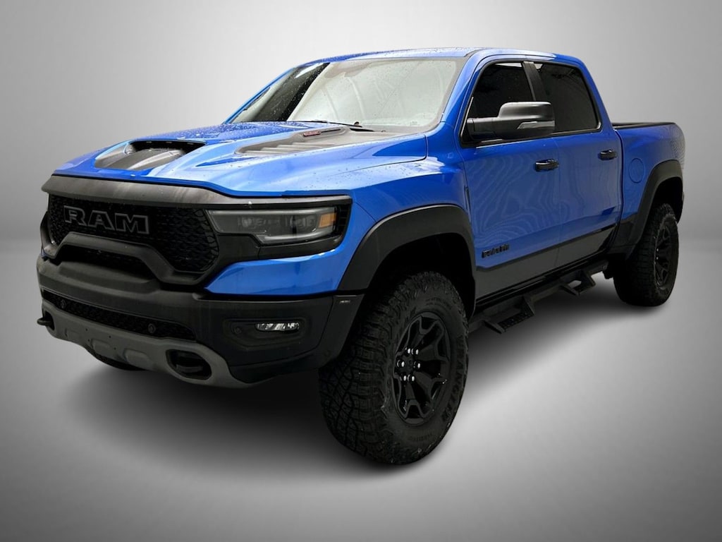 Hydro Blue Pearlcoat 2024 Ram 1500 TRX 4WD 8-Speed Automatic 6.2L Supercharged HEMI V8 SRT #2 Seat Foam Cushion, 10 Speakers, 2-Door Passive Entry, Front Door Locks, 3.55 Rear Axle Ratio, 4 Way Front Headrests, 4-Wheel Disc Brakes, ABS brakes, Accent Color Door Handles, Adaptive Cruise Control w/Stop & Go, Adaptive suspension, Advanced Safety Group, Air Conditioning, Alloy wheels, AM/FM radio: SiriusXM with 360L, Apple CarPlay/Android Auto, Auto High-beam Headlights, Auto-dimming door mirrors, Auto-dimming Rear-View mirror, Automatic temperature control, Blind Spot & Cross Path Detection, Brake assist, Bucket Seats, Cloth/Vinyl Bucket Seats, Compass, Delay-off headlights, Digital Rearview Mirror, Dome Dual LED Reading Lamp, Driver door bin, Driver Seat Memory, Driver/Passenger Wrapped Assist Handles, Dual front impact airbags, Dual front side impact airbags, Dual-Pane Panoramic Sunroof, Electronic Stability Control, Exterior Mirrors Courtesy Lamps, Exterior Mirrors w/Heating Element, Exterior Mirrors w/Memory, Exterior Mirrors w/Supplemental Signals, Front anti-roll bar, Front Bucket Seats, Front Center Armrest w/Storage, Front Door Accent Lighting, Front dual zone A/C, Front fog lights, Front License Plate Bracket, Front reading lights, Front Seat Back Map Pockets, Front wheel independent suspension, Full Length Premium Upgraded Floor Console, Fully automatic headlights, harman/kardon 19 Speaker Premium Sound, Heads-Up Display, Heated door mirrors, Heated Front Seats, Heated Second Row Seats, Heated Steering Wheel, Illuminated entry, IP LED Ambient Light Pipe, Lane Keep Assist, Leather Shift Knob, Leather steering wheel, Leather Trimmed Bucket Seats, Leather/Suede Flat-Bottom Steering Wheel, LED CHMSL Lamp, Low tire pressure warning, Luxury Front Door Trim Panel, MOPAR Bright Pedal Kit, Navigation System, Occupant sensing airbag, Outside temperature display, Overhead airbag, Overhead console, Panic alarm, ParkSense Front/Rear Park Assist w/Stop, ParkView Rear Back-Up Camera, Passenger door bin, Passenger vanity mirror, Pedestrian Emergency Braking, Pick-Up Box Lighting, Power 4-Way Driver Lumbar Adjust, Power 4-Way Passenger Lumbar Adjust, Power 8-Way Driver & Passenger Seats, Power Adjustable Pedals w/Memory, Power door mirrors, Power driver seat, Power steering, Power windows, Power-Folding Mirrors, Premium Wrapped IP Bezel, Quick Order Package 29Y TRX, Radio data system, Radio: Uconnect 5 Nav w/12.0" Display, Radio/Driver Seat/Mirrors/Pedals Memory, Rain Sensitive Windshield Wipers, Rear 60/40 Folding Seat, Rear 60/40 Folding Split Recline Seat, Rear Door Accent Lighting, Rear seat center armrest, Rear step bumper, Rear Underseat Compartment Storage, Rear Window Defroster, Remote keyless entry, Remote Tailgate Release, Security system, Speed control, Split folding rear seat, Sport steering wheel, Steering wheel mounted audio controls, Sun Visors w/Illuminated Vanity Mirrors, Surround View Camera System, Tachometer, Telescoping steering wheel, Tilt steering wheel, Traction control, Trailer Brake Control, Trip computer, TRX Level 2 Equipment Group, TRX Red Interior Accents, Turn signal indicator mirrors, Universal Garage Door Opener, Variably intermittent wipers, Ventilated Front Seats, Ventilated Rear Seats, Voltmeter, Wheels: 18" x 9" Black Paint/Polish Aluminum, Wireless Charging Pad.