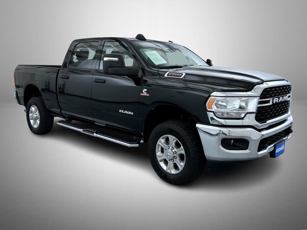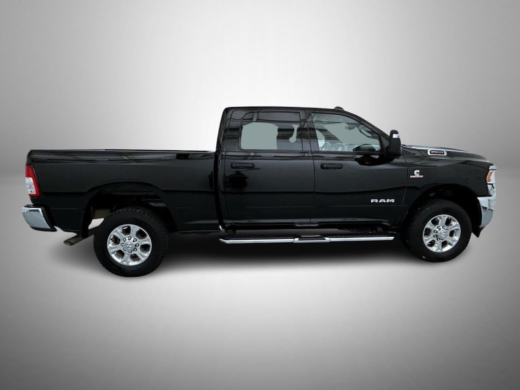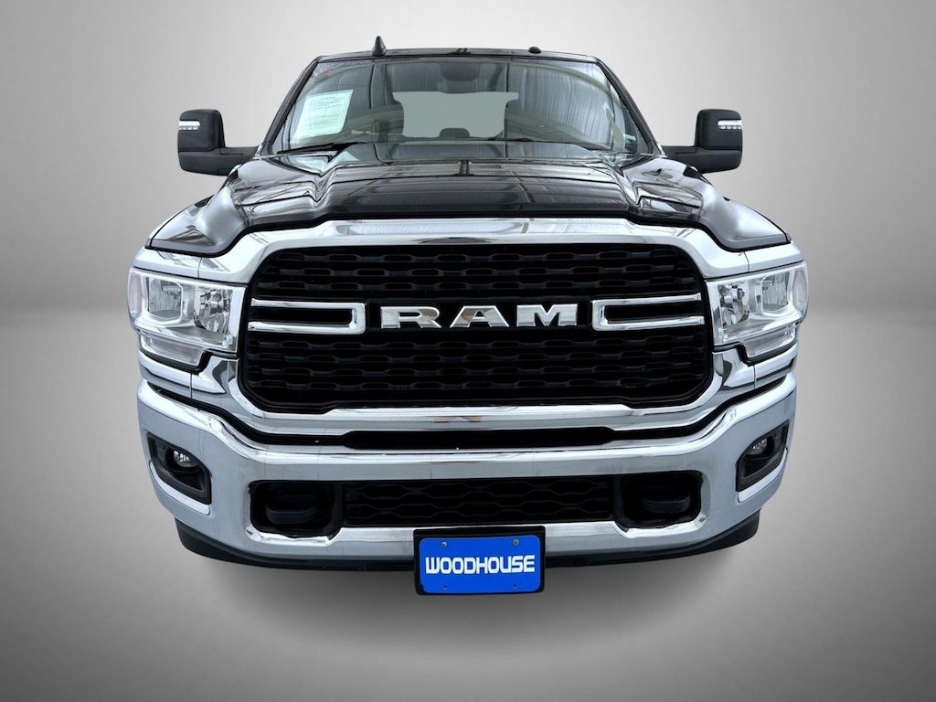 Diamond Black Crystal Pearlcoat 2024 Ram 2500 Big Horn 4WD 6-Speed Automatic Cummins 6.7L I6 Turbodiesel 2 Way Rear Headrest Seat, 2nd Row In Floor Storage Bins, 3.73 Axle Ratio, 4 Way Front Headrests, 4-Wheel Disc Brakes, 40/20/40 Split Bench Seat, 4G LTE Wi-Fi Hot Spot, 6 Speakers, 8.4" Touchscreen Display, ABS brakes, Active Noise Control System, Air Conditioning, Apple CarPlay, Auto Power-Folding Mirrors, Big Horn IP Badge, Black Exterior Mirrors, Bluetooth Handsfree Phone & Audio, Brake assist, Bumpers: chrome, Center Hub, Center Stack Storage Drawer, Chrome Flat Cab-Length Side Steps, Cloth 40/20/40 Bench Seat, Compass, Connectivity - US/Canada, Delay-off headlights, Driver door bin, Dual front impact airbags, Dual front side impact airbags, Dual Glove Boxes, Electronic Stability Control, Electronically Controlled Throttle, Emergency communication system: SiriusXM Guardian, Exterior Mirrors Courtesy Lamps, Exterior Mirrors w/Heating Element, Exterior Mirrors w/Supplemental Signals, Foam Bottle Insert (Door Trim Panel), Footwell Courtesy Lamp, For Details, Visit DriveUconnect.com, For More Info, Call 800-643-2112, Forward & Reverse Utility Lights, Front anti-roll bar, Front Armrest w/Cupholders, Front Center Armrest w/Storage, Front Center Seat Cushion Storage, Front Fog Lamps, Front License Plate Bracket, Front reading lights, Front Seat Back Map Pockets, Fully automatic headlights, Global Telematics Box Module (TBM), Glove Box Lamp, Google Android Auto, GPS Antenna Input, Heated door mirrors, Illuminated entry, Integrated Center Stack Radio, Integrated Voice Command w/Bluetooth, Leather Wrapped Steering Wheel, Level 1 Equipment Group, Locking Lower Glove Box, Low tire pressure warning, Manual Adjust 4-Way Driver Seat, Manual Adjust 4-Way Front Passenger Seat, Manufacturer's Statement of Origin, Mirror Running Lights, Occupant sensing airbag, Outside temperature display, Overhead airbag, Overhead console, Panic alarm, ParkView Rear Back-Up Camera, Passenger door bin, Passenger vanity mirror, Power 2-Way Driver Lumbar Adjust, Power Adjust 8-Way Driver Seat, Power Adjust Mirrors, Power Adjustable Convex Aux Mirrors, Power door mirrors, Power Heated Fold Telescope Mirrors, Power steering, Power Telescoping Mirrors, Power windows, Premium Cloth 40/20/40 Bench Seat (DISC), Quick Order Package 2HZ Big Horn, Radio data system, Radio: Uconnect 3 w/5" Display, Radio: Uconnect 5 W w/8.4" Display, Rear 60/40 Folding Seat, Rear anti-roll bar, Rear Dome w/On/Off Switch Lamp, Rear Folding Seat, Rear seat center armrest, Rear step bumper, Remote keyless entry, Remote USB Port - Charge Only, Selectable Tire Fill Alert, SiriusXM Radio Service, SiriusXM Satellite Radio, Speed control, Steering Wheel Mounted Audio Controls, Storage Tray, Tachometer, Tilt steering wheel, Tip Start, Tow Hooks, Traction control, Trip computer, Turn signal indicator mirrors, Variably intermittent wipers, Voltmeter, Wheels: 18" x 8.0" Polished Aluminum, Wheels: 18" x 8.0" Steel Chrome Clad.