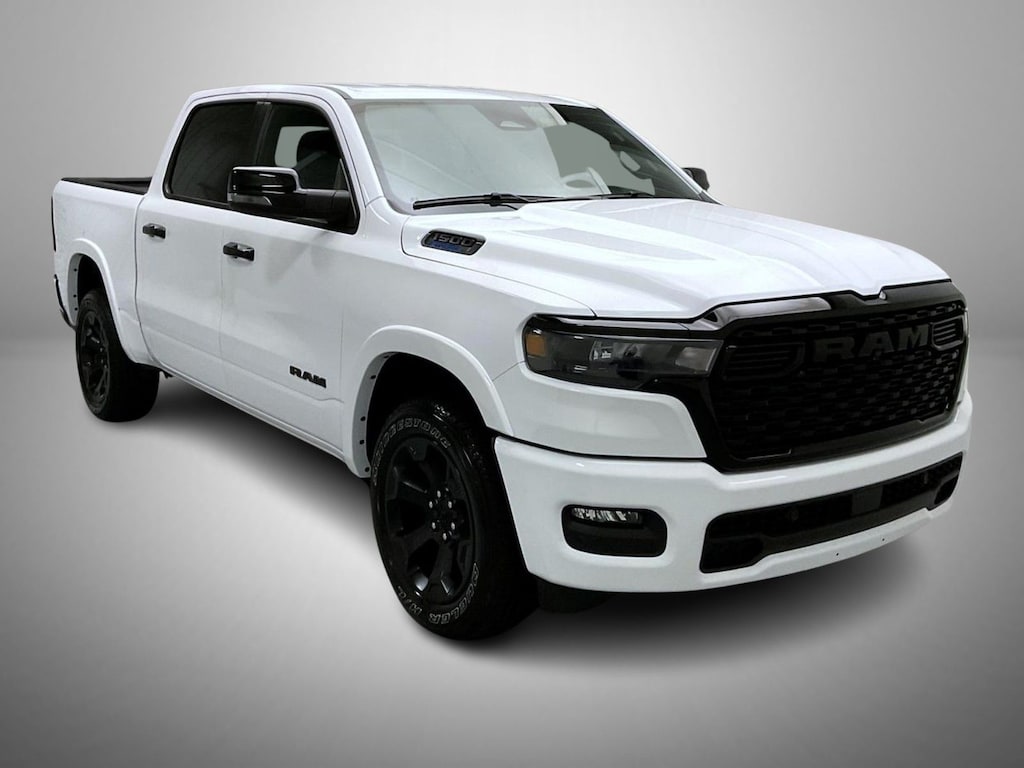 Bright White Clearcoat 2025 Ram 1500 Big Horn/Lone Star 4WD 8-Speed Automatic 3.6L V6 24V VVT 115V Auxiliary Power Outlet, 115V Auxiliary Rear Power Outlet, 12" Touchscreen Display, 2nd Row In Floor Storage Bins, 3 Rear Seat Head Restraints, 3.21 Rear Axle Ratio, 4 Way Front Headrests, 4-Wheel Disc Brakes, 400W Inverter, 4G LTE Wi-Fi Hot Spot, 6 Speakers, 9 Amplified Speakers w/Subwoofer, ABS brakes, Accent Color Door Handles, Accent Color Premium Power Mirrors, Accent Color Tailgate Handle, Air Conditioning, Air Conditioning ATC w/Dual Zone Control, Alloy wheels, AM/FM radio, Anti-Spin Differential Rear Axle, Apple CarPlay, Apple CarPlay/Android Auto, Auto High-beam Headlights, Auto Power-Folding Mirrors, Auto-Dimming Exterior Driver Mirror, Auto-Dimming Rear-View Mirror, Big Horn Badge, Big Horn Level 2 Equipment Group, Black Exterior Mirrors, Black Exterior Truck Badging, Black Headlamp Bezels, Black Interior Accents, Black Painted Exterior Mirrors Caps, Black Premium Power Mirrors, Black Tail Lamp Bezels, Body Color Front Bumper, Body Color Rear Bumper w/Step Pads, Brake assist, Bucket Seats, Bumpers: chrome, Cloth Bench Seat, Cluster 7.0" TFT Color Display, Compass, Configurable Drive Mode, Connected Travel & Traffic Services, Connectivity - US/Canada, Convex Wide-Angle Exterior Mirror Insert, Delay-off headlights, Deluxe Cloth Bucket Seats, Driver door bin, Dual front impact airbags, Dual front side impact airbags, Electronic Stability Control, Exterior Mirrors Courtesy Lamps, Exterior Mirrors w/Heating Element, Exterior Mirrors w/Supplemental Signals, Front anti-roll bar, Front Center Armrest w/Storage, Front fog lights, Front License Plate Bracket, Front reading lights, Front Seat Back Map Pockets, Front wheel independent suspension, Full Length Floor Console, Fully automatic headlights, Glove Box Lamp, Google Android Auto, GPS Antenna Input, GPS Navigation, Grille Black Surround Black Mesh, HD Radio, Heated door mirrors, Heated Front Seats, Heated Steering Wheel, Illuminated entry, Integrated Voice Command w/Bluetooth, Leather Wrapped Steering Wheel, LED Dome Lamp w/On/Off Switch, LED Footwell Lighting, Low tire pressure warning, Manual Adjust 4-Way Front Passenger Seat, Manual Folding Exterior Mirrors, Manufacturer's Statement of Origin, Media Hub w/2 Charge Only USBs, Night Edition, Occupant sensing airbag, Outside temperature display, Overhead airbag, Overhead console, Overhead LED Lamps, Panic alarm, ParkView Rear Back-Up Camera, Passenger door bin, Passenger vanity mirror, Power 2-Way Driver Lumbar Adjust, Power Adjust 8-Way Driver Seat, Power Adjustable Pedals, Power door mirrors, Power steering, Power windows, Premium Overhead Console, Quick Order Package 23Z Big Horn, Radio data system, Radio: Uconnect 5 Nav w/12.0" Display, Radio: Uconnect 5 W w/8.4" Display, RAM Grille Badge - Black, RAM Grille Badge - Chrome, Rear 60/40 Folding Seat, Rear anti-roll bar, Rear Center Armrest, Rear Power Sliding Window, Rear seat center armrest, Rear step bumper, Rear Window Defroster, Remote keyless entry, Remote Tailgate Release, Security Alarm, SiriusXM w/360L, Speed control, Split folding rear seat, Steering Wheel Mounted Audio Controls, Sun Visors w/Illuminated Vanity Mirrors, Supplier Part Tracking (J-1), Tachometer, Telescoping steering wheel, Tilt steering wheel, Traction control, Trip computer, Universal Garage Door Opener, USB Host Flip, Variably intermittent wipers, Voltmeter, Wheels: 18" x 8" Cast-Aluminum Painted, Wheels: 20" x 9.0" Aluminum Painted Clad.