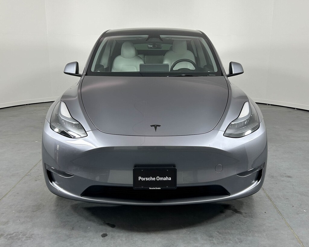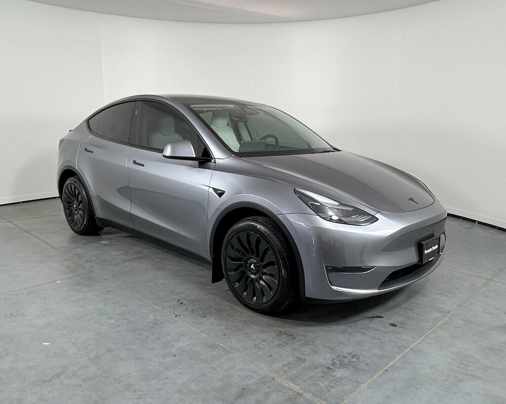 Silver 2024 Tesla Model Y Long Range AWD 1-Speed Automatic Electric Motor 14 Speakers, 4-Wheel Disc Brakes, 5 Seat Interior, 9.0 Axle Ratio, ABS brakes, Air Conditioning, Alloy wheels, Audio memory, Auto High-beam Headlights, Auto tilt-away steering wheel, Auto-dimming door mirrors, Auto-dimming Rear-View mirror, Automatic temperature control, Brake assist, Bumpers: body-color, Compass, Delay-off headlights, Driver door bin, Driver vanity mirror, Dual front impact airbags, Dual front side impact airbags, Electronic Stability Control, Emergency communication system, Exterior Parking Camera Rear, Four wheel independent suspension, Front anti-roll bar, Front Bucket Seats, Front Center Armrest, Front dual zone A/C, Front fog lights, Front reading lights, Fully automatic headlights, Genuine wood dashboard insert, Heated door mirrors, Heated front seats, Heated rear seats, Heated steering wheel, HVAC memory, Illuminated entry, Knee airbag, Lane Departure Warning System, Low tire pressure warning, Memory seat, Navigation System, Occupant sensing airbag, Outside temperature display, Overhead airbag, Passenger door bin, Passenger vanity mirror, Power door mirrors, Power driver seat, Power Liftgate, Power passenger seat, Power steering, Power windows, Radio data system, Radio: Premium Audio System w/13 Speakers, Rain sensing wipers, Rear reading lights, Rear seat center armrest, Rear window defroster, Security system, Speed control, Speed-sensing steering, Split folding rear seat, Steering wheel memory, Steering wheel mounted A/C controls, Steering wheel mounted audio controls, Telescoping steering wheel, Tilt steering wheel, Traction control, Trip computer, Variably intermittent wipers, Vegan Leather Seat Trim, Wheels: 19" x 9.5" Gemini Dark.