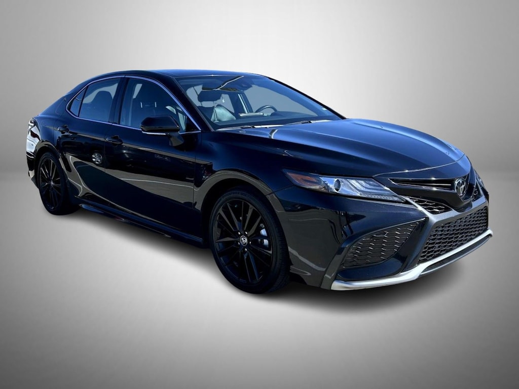 Black 2023 Toyota Camry XSE FWD 8-Speed Automatic 2.5L I4 DOHC 16V Black Leather, 4-Wheel Disc Brakes, 6 Speakers, ABS brakes, Air Conditioning, Alloy wheels, AM/FM radio: SiriusXM, Apple CarPlay/Android Auto, Auto High-beam Headlights, Auto-dimming Rear-View mirror, Automatic temperature control, Brake assist, Bumpers: body-color, Delay-off headlights, Driver door bin, Driver vanity mirror, Dual front impact airbags, Dual front side impact airbags, Electronic Stability Control, Emergency communication system: Safety Connect (1-year trial), Exterior Parking Camera Rear, Four wheel independent suspension, Front anti-roll bar, Front Bucket Seats, Front Center Armrest, Front dual zone A/C, Front reading lights, Fully automatic headlights, Garage door transmitter: HomeLink, Heated door mirrors, Heated front seats, Illuminated entry, Knee airbag, Leather steering wheel, Low tire pressure warning, Multi-Stage Heated Front Bucket Seats, Occupant sensing airbag, Outside temperature display, Overhead airbag, Overhead console, Panic alarm, Passenger door bin, Passenger vanity mirror, Perforated Leather Seat Trim, Power door mirrors, Power driver seat, Power passenger seat, Power steering, Power windows, Radio data system, Radio: Audio Plus, Rear anti-roll bar, Rear reading lights, Rear seat center armrest, Rear side impact airbag, Rear window defroster, Remote keyless entry, Security system, Speed control, Speed-sensing steering, Split folding rear seat, Spoiler, Steering wheel mounted audio controls, Tachometer, Telescoping steering wheel, Tilt steering wheel, Traction control, Trip computer, Turn signal indicator mirrors, Variably intermittent wipers, Wheels: 8.0J x 19" Alloy, Black Leather.