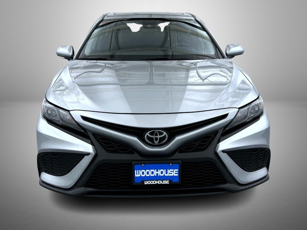 Silver 2023 Toyota Camry SE FWD 8-Speed Automatic 2.5L I4 DOHC 16V 4-Wheel Disc Brakes, 6 Speakers, 8.0J x 18" Alloy Wheels, ABS brakes, Air Conditioning, Alloy wheels, AM/FM radio: SiriusXM, Apple CarPlay/Android Auto, Auto High-beam Headlights, Automatic temperature control, Brake assist, Bumpers: body-color, Delay-off headlights, Driver door bin, Driver vanity mirror, Dual front impact airbags, Dual front side impact airbags, Electronic Stability Control, Emergency communication system: Safety Connect (1-year trial), Exterior Parking Camera Rear, Four wheel independent suspension, Front anti-roll bar, Front Bucket Seats, Front Center Armrest, Front dual zone A/C, Front reading lights, Fully automatic headlights, Heated door mirrors, Illuminated entry, Knee airbag, Leather steering wheel, Low tire pressure warning, Occupant sensing airbag, Outside temperature display, Overhead airbag, Overhead console, Panic alarm, Passenger door bin, Passenger vanity mirror, Power door mirrors, Power driver seat, Power steering, Power windows, Radio data system, Radio: Audio, Rear anti-roll bar, Rear seat center armrest, Rear side impact airbag, Rear window defroster, Remote keyless entry, Security system, Speed control, Speed-sensing steering, Split folding rear seat, Spoiler, Sport SofTex Seat Trim w/Fabric Inserts, Steering wheel mounted audio controls, Tachometer, Telescoping steering wheel, Tilt steering wheel, Traction control, Trip computer, Turn signal indicator mirrors, Variably intermittent wipers.